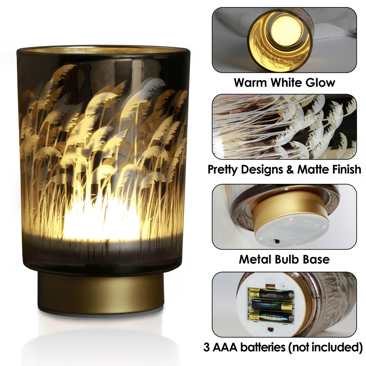 Eywamage Battery Operated Table Lamp With Remote, Pampas Cordless Glass Accent Lamp Lights For Bedroom Living Room Kitchen