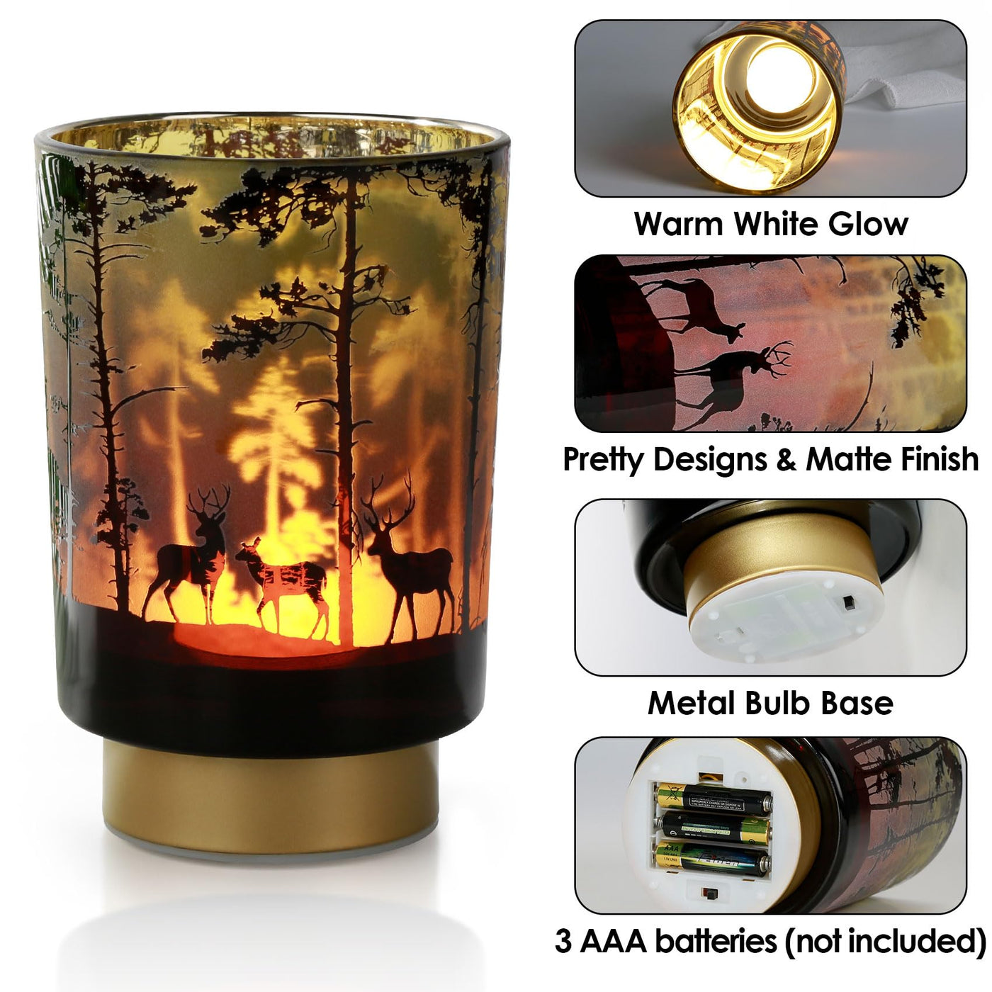 Eywamage Large Battery Operated Table Lamp With Remote, Forest Deer Accent Lamp, Cordless Glass Lamp For Bedroom Living Room