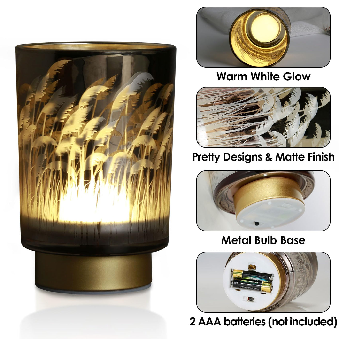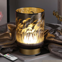 Eywamage Small Battery Operated Table Lamp With Remote, Pampas Cordless Glass Accent Lamp Lights For Bedroom Kitchen Living Room