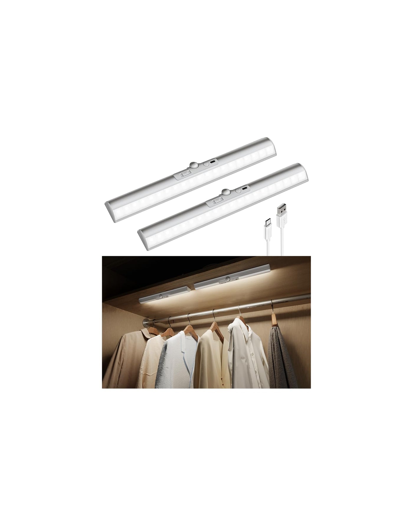 EZVALO 2 Pack Motion Sensor Closet Lights with No-Glare Design, Rechargeable Pantry Light, Rotatable Sensor, 90+CRI, 3 Color Temps & Dimmable Led Lights for Closet, Stairs, Hallway