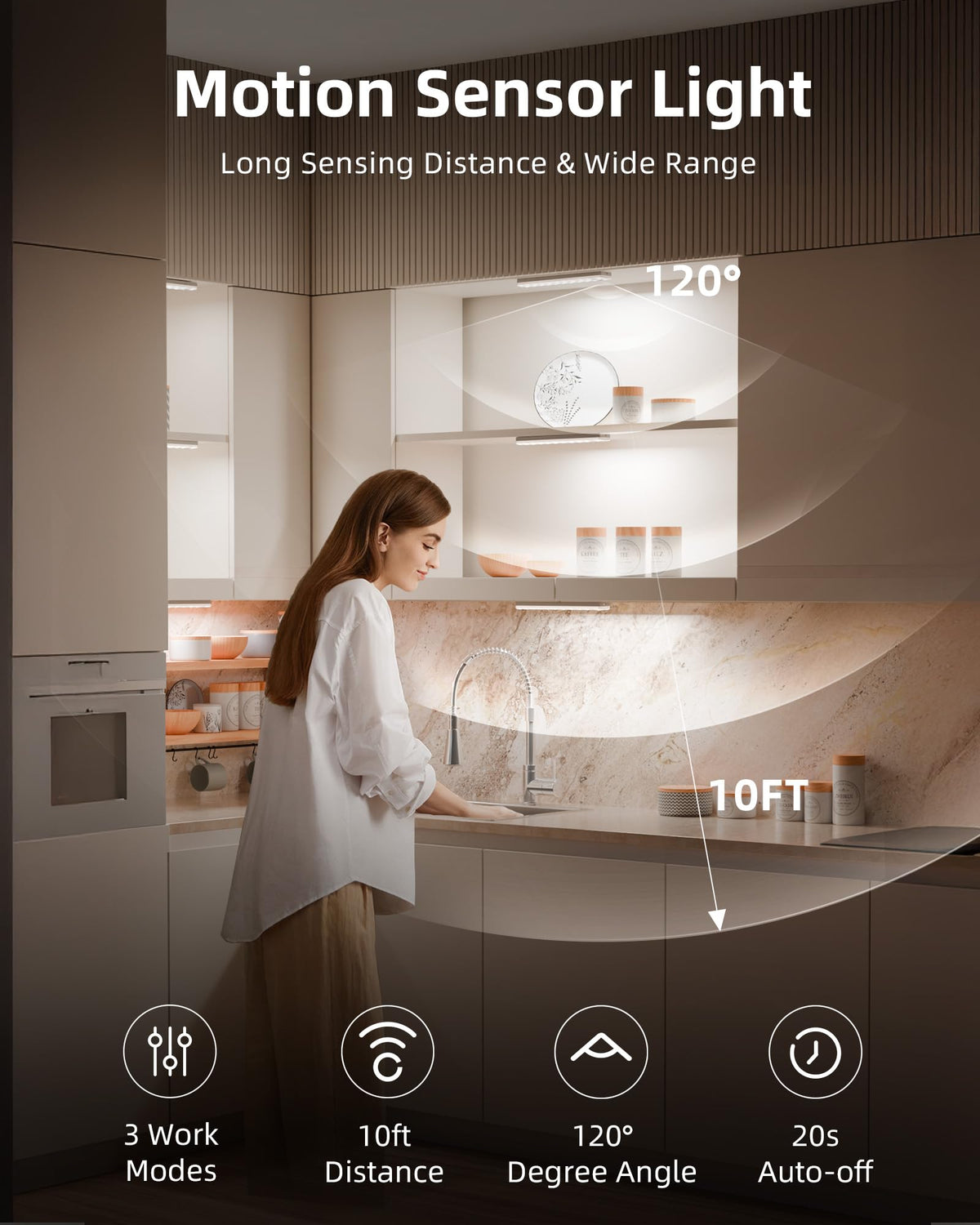 Ezvalo 62 Led Under Cabinet Lighting With Charging Station, Rechargeable Motion Sensor Lights, 3 Color Temps, Dimmable Wireless
