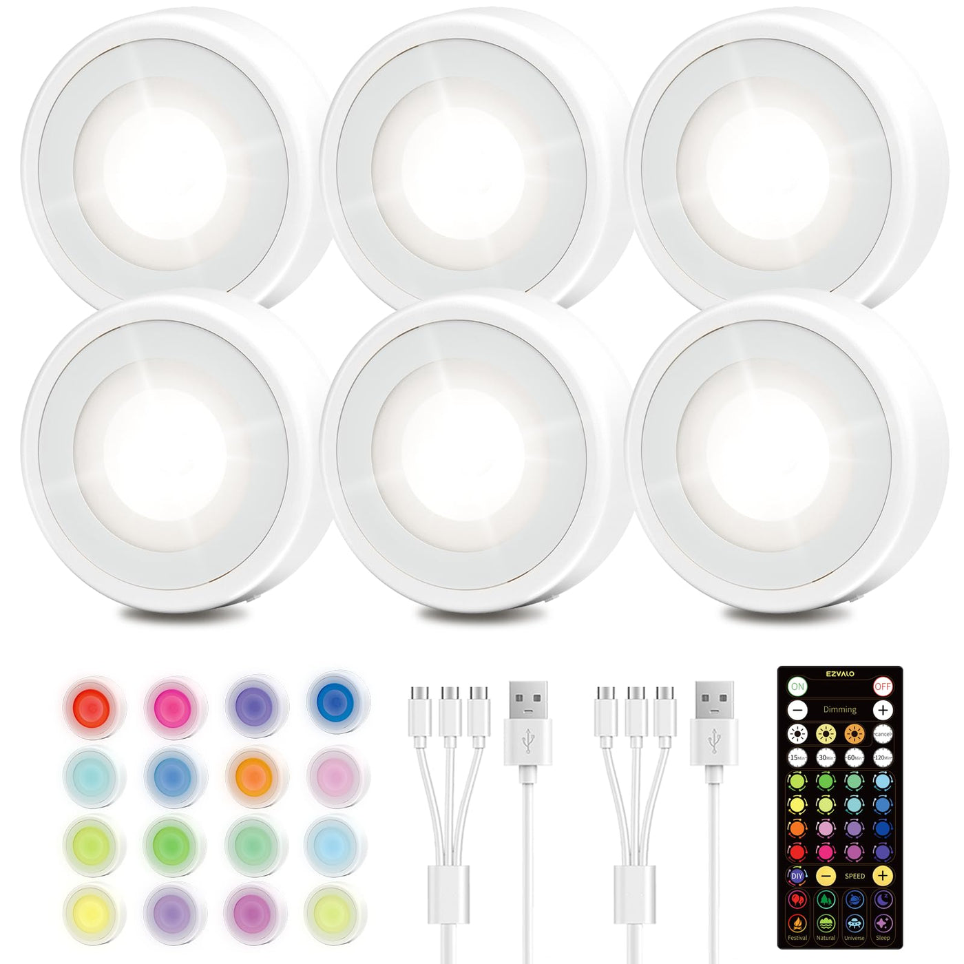 Ezvalo Rechargeable Puck Lights With Remote 3 Color Temps & 16 Rgb Push Press On Lights Closet Lights Tap Lights Stick On Lights Under Cabinet Lighting Dimmable Under Cabinet Lights For Kitchen Cabinets Closet (6 Packs) Under Cabinet Lights Under Cabinet Lighting Under Cabinet Lighting Wireless Under Counter Lights For Kitchen Closet Lights Motion Sensored Battery Operated Lights Led Lights Led Under Cabinet Lighting Closet Light Led Closet Light Led Cabinet Light Pumpkin Lights Stair Lights Indoor Ambient Lighting Locker Classroom Lights Halloween