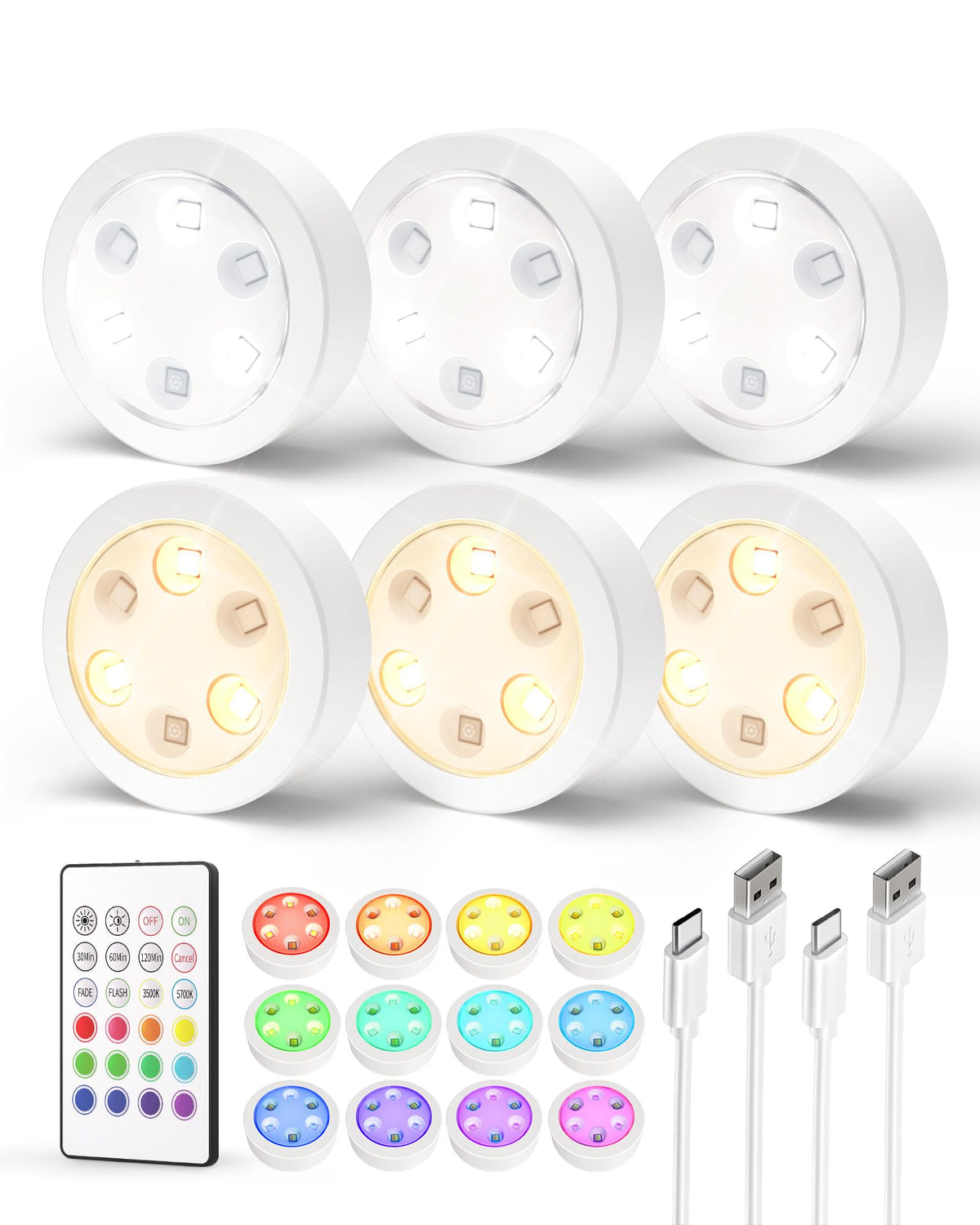 Ezvalo Puck Lights With Remote, 14 Colors Rgb, Led Under Cabinet Lighting (6 Pcs)