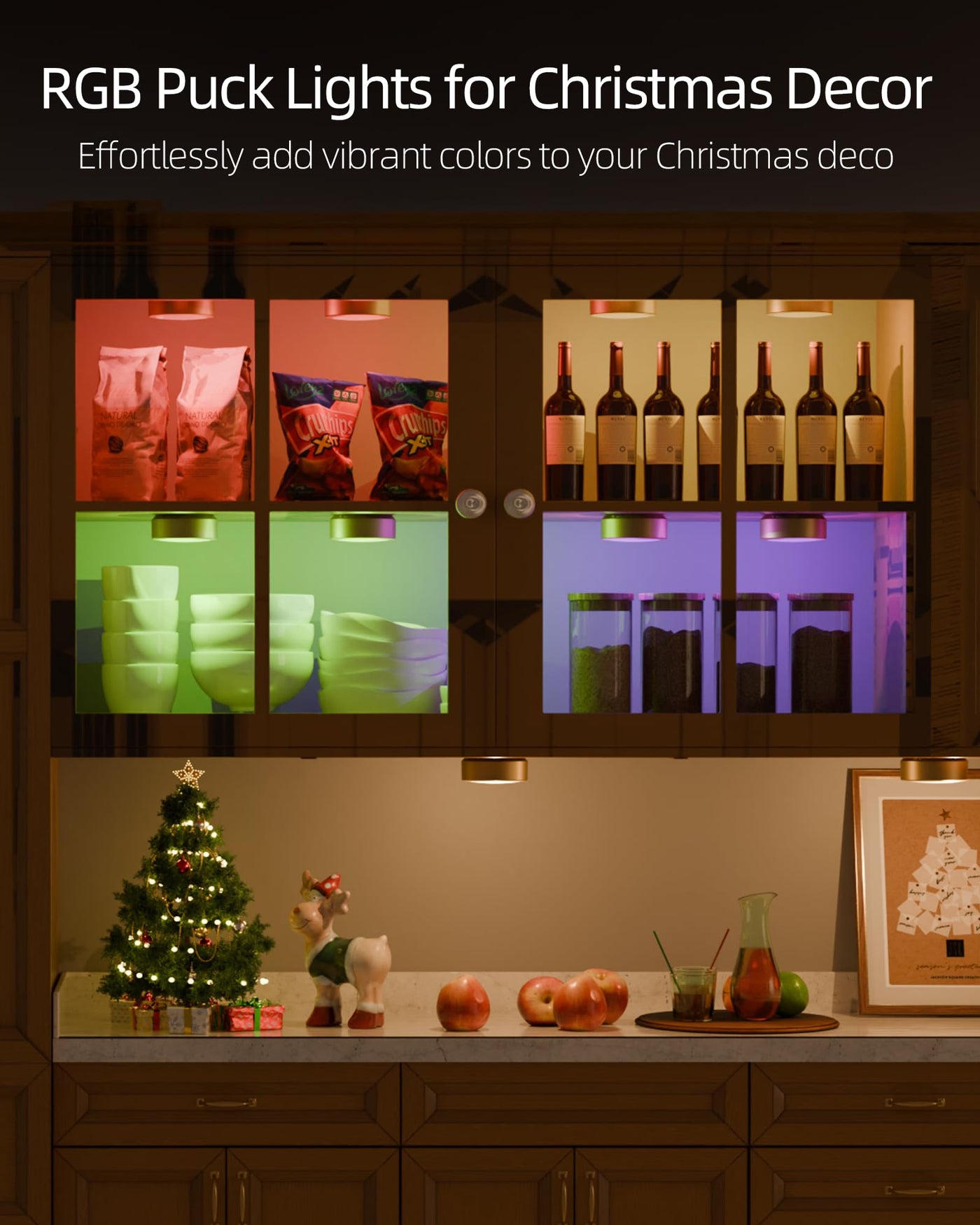The EZVALO LED Puck Lights are versatile, rechargeable lighting solutions designed to enhance the ambiance in various spaces of your home. With vibrant RGB colors and adjustable color temperatures, these lights are perfect for creating mood lighting in kitchens, closets, or during festive occasions.