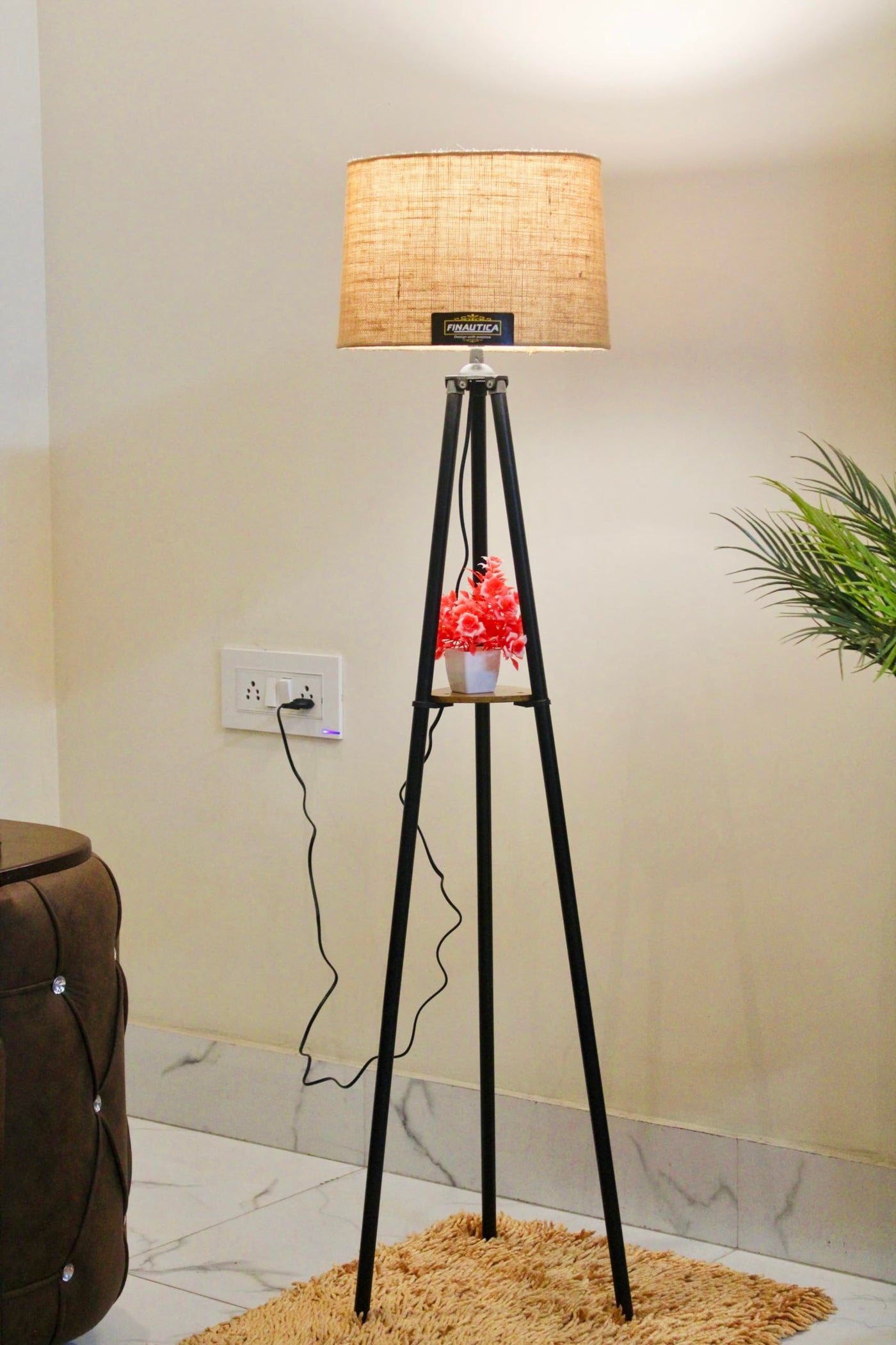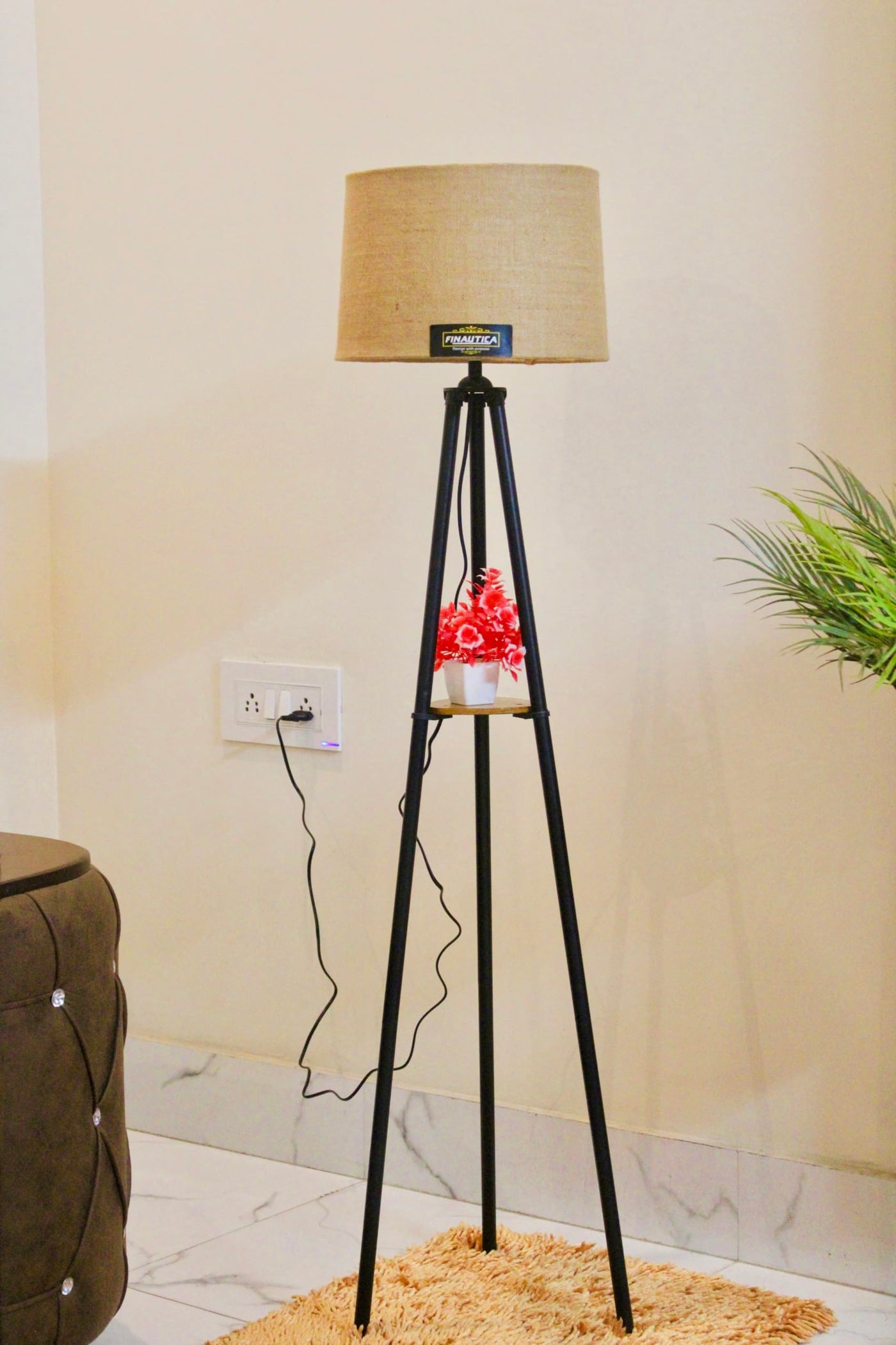 F N Italian Lamp with Home Decor Corner Design Jute Drum Shade, Bulb, Wiring, E27 Holder Included Pack of 1
