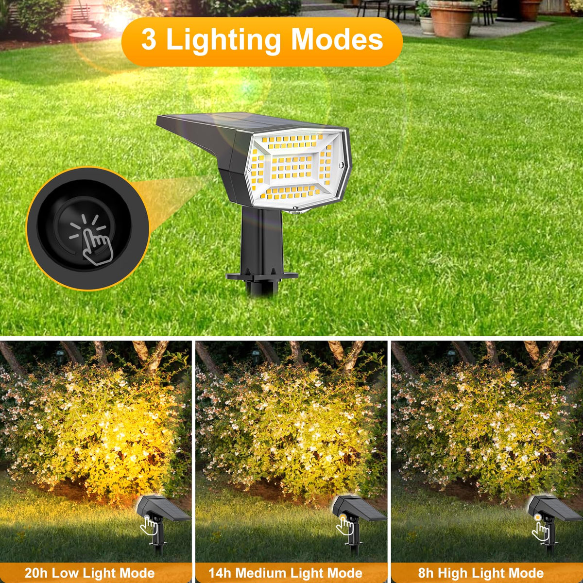 Fabrito 72 Leds Solar Spot Lights Outdoor Waterproof, 3 Modes Landscape Spotlights, Dusk To Dawn Solar Powered Flood Wall Lights For Outside, Solar Garden Lights For Yard Porch 6 Pack (Warm White)