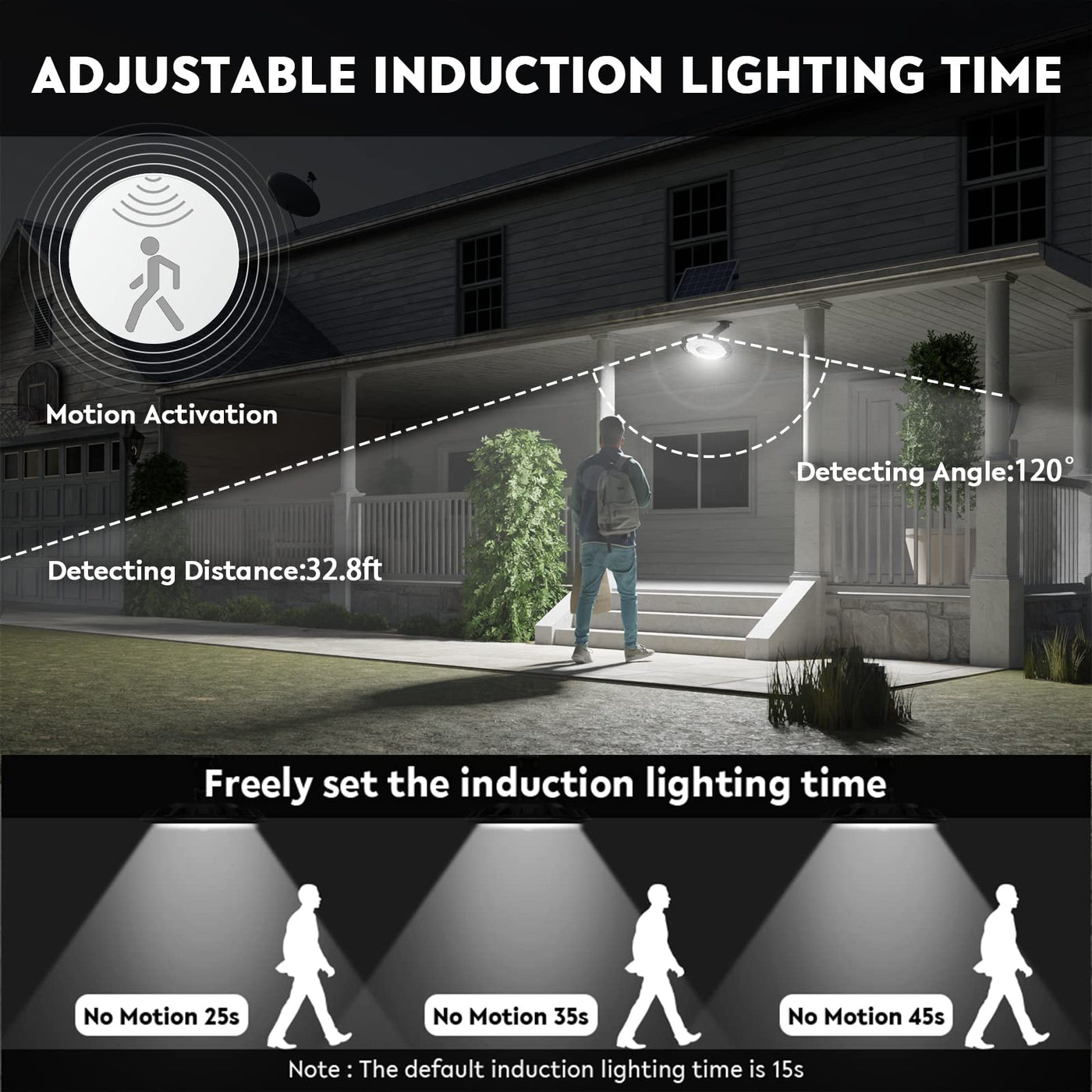 - ?Remote Control & Long Battery Life? Enjoy personalized lighting with our solar light equipped with remote control, allowing you to easily manage the brightness with 5 levels (100%/80%/60%/40%/20%) and set induction lighting times of 25s/35s/45s. Experience unparalleled convenience with a battery life of up to 8-12 hours.