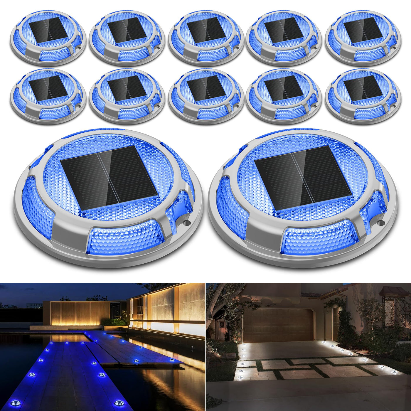Fabstyl Solar Driveway Lights 12 Pack - Waterproof Led Pathway Markers (Blue & White)