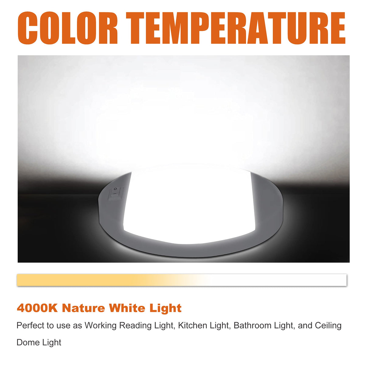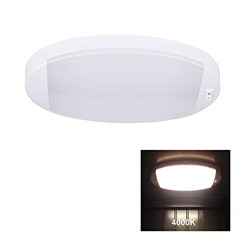 Facon 12V Rv Oval Pancake Light, Length: 6'', 4000K Nature White Light, 12Volt Interior Rv Ceiling Dome Light With On/Off Switch
