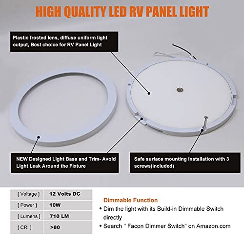 Facon 8-Inch Dimmable Led Rv Panel Light With Touch Switch - 12V Dc, 2 Color Options