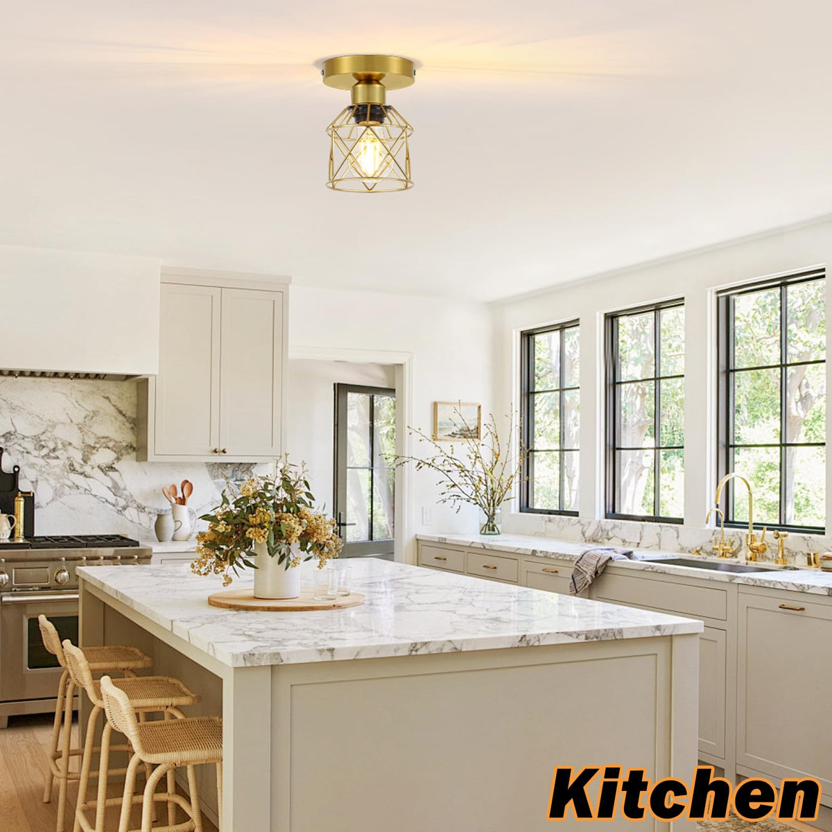 This Gold Cage Ceiling Light Is Perfect For Vintage Farmhouse And Modern Decors. Features With Brushed Gold Metal Canopy And Open Cage Shade The Gold Lighting Fixture Is Unique Classic And Beautiful It Is The Best Choice To Creat A Beautiful And Comfortable Ambiance In Your Home.