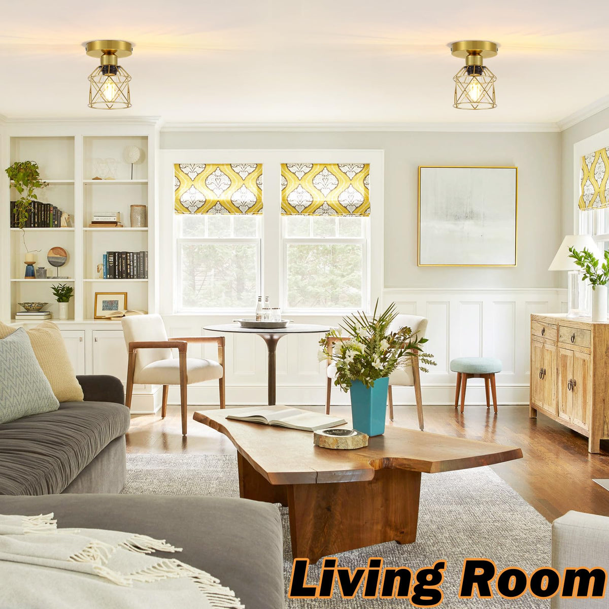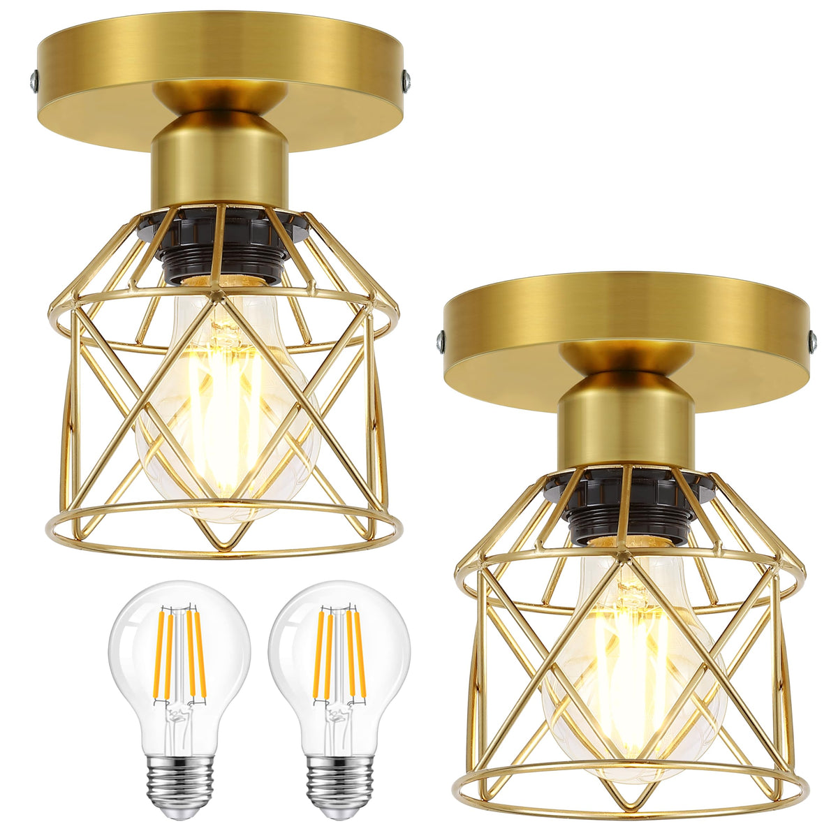 Fadimikoo 2-Pack Gold Hallway Light Fixtures Ceiling Small Semi Flush Mount Ceiling Light With Gold Metal Cage Indoor Close To Lighting Lamp For Bedroom Closet Entryway (Led Bulbs Included)