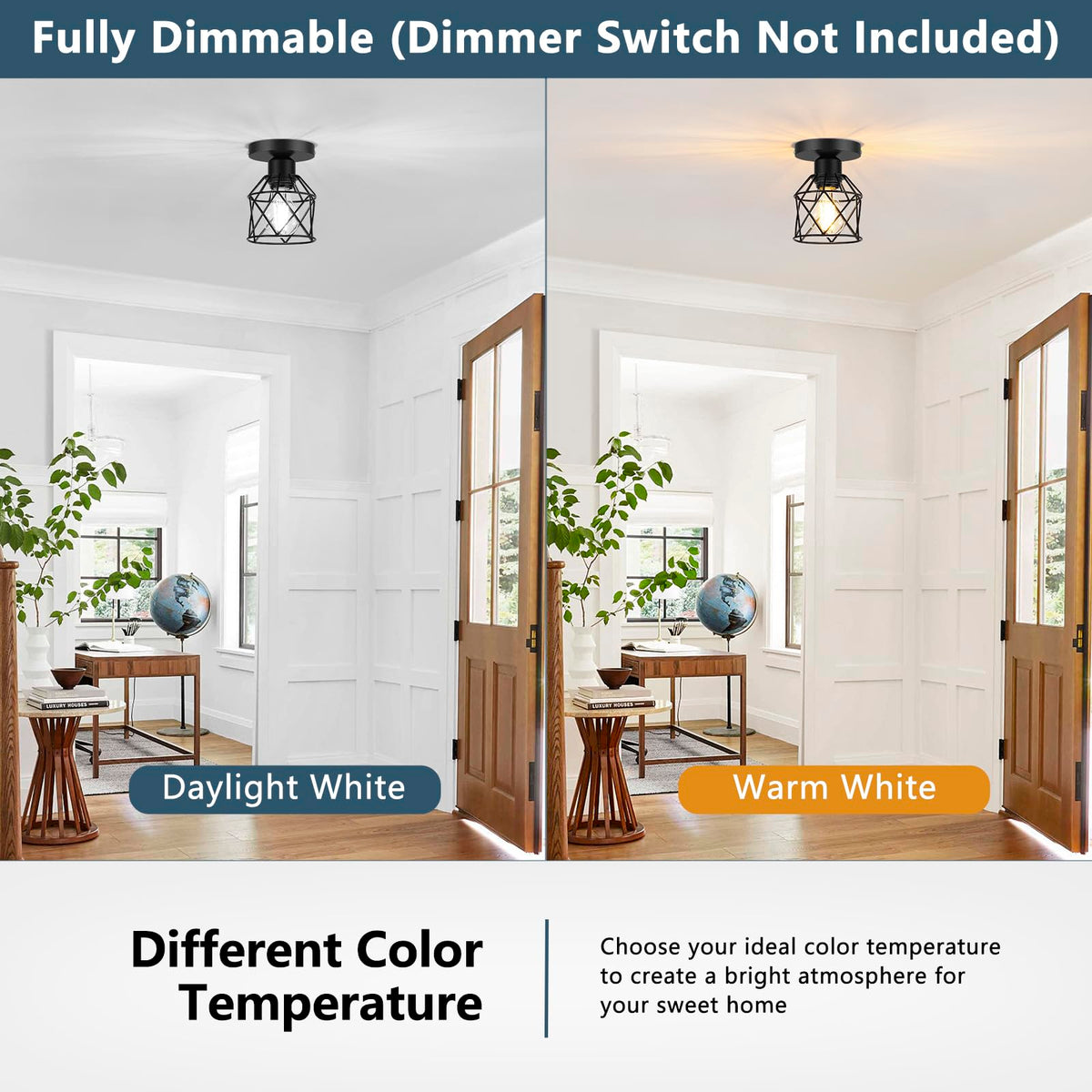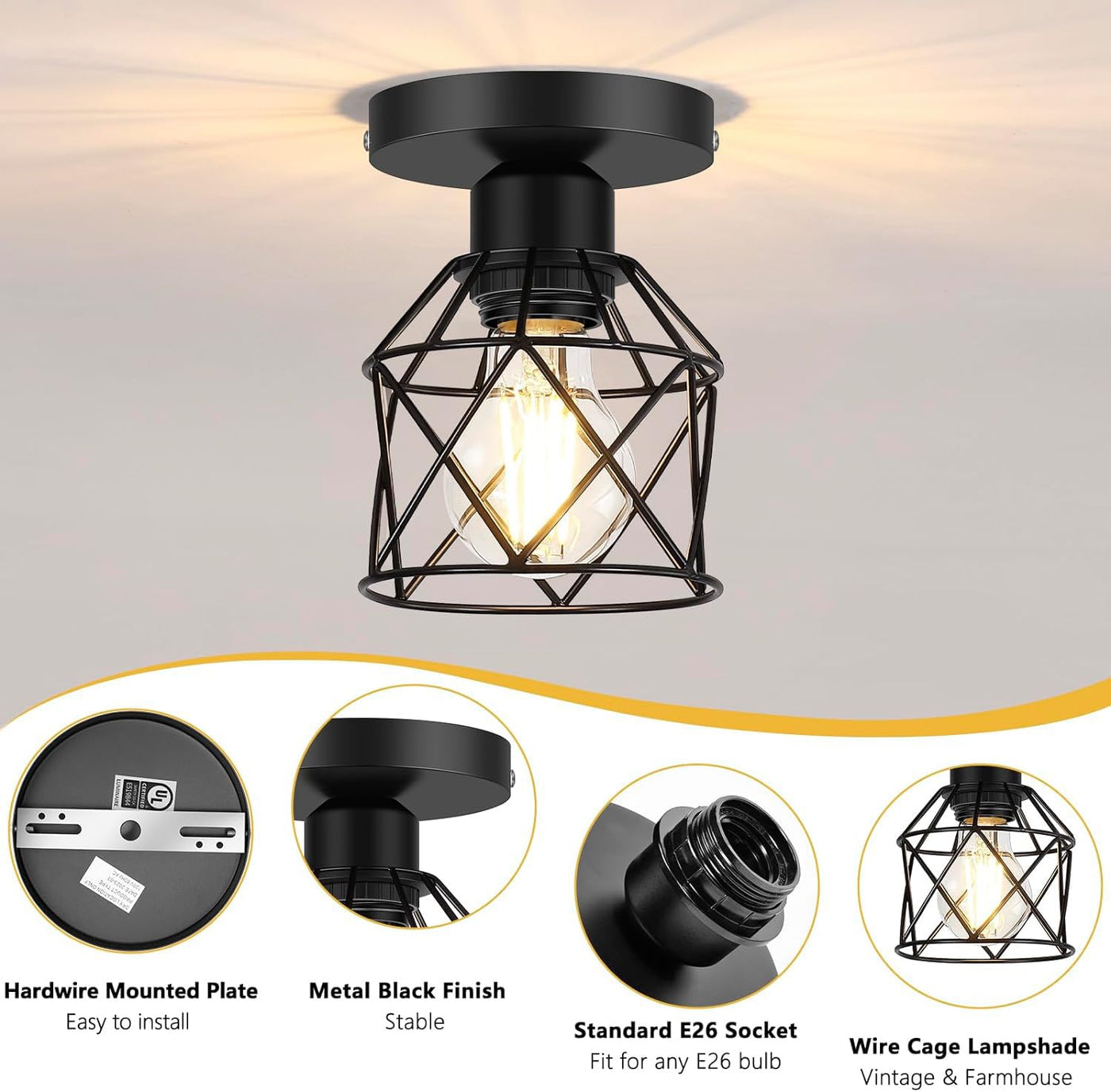 Semi Flush Mount Design: Perfect for vintage and modern decors, providing a stylish lighting solution.