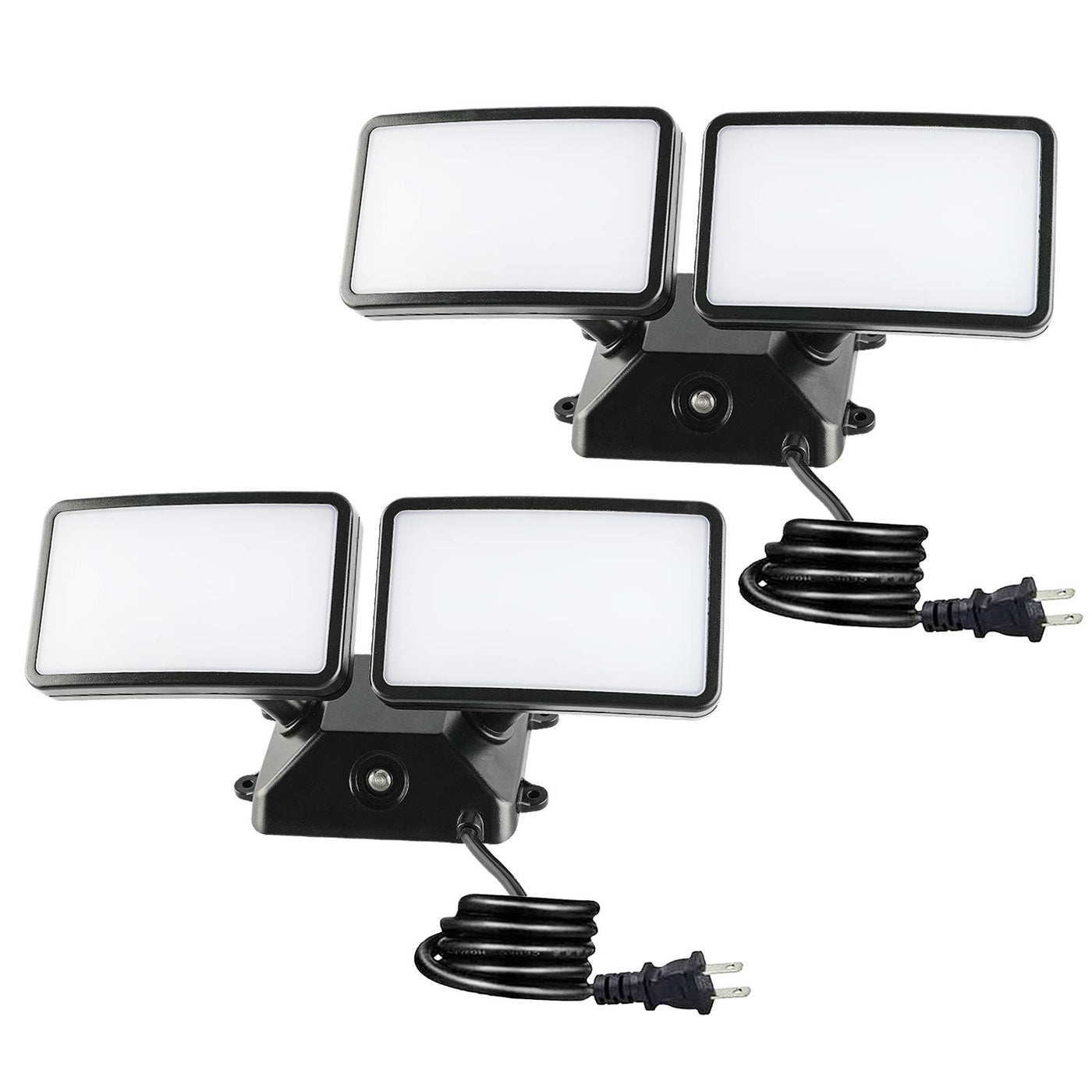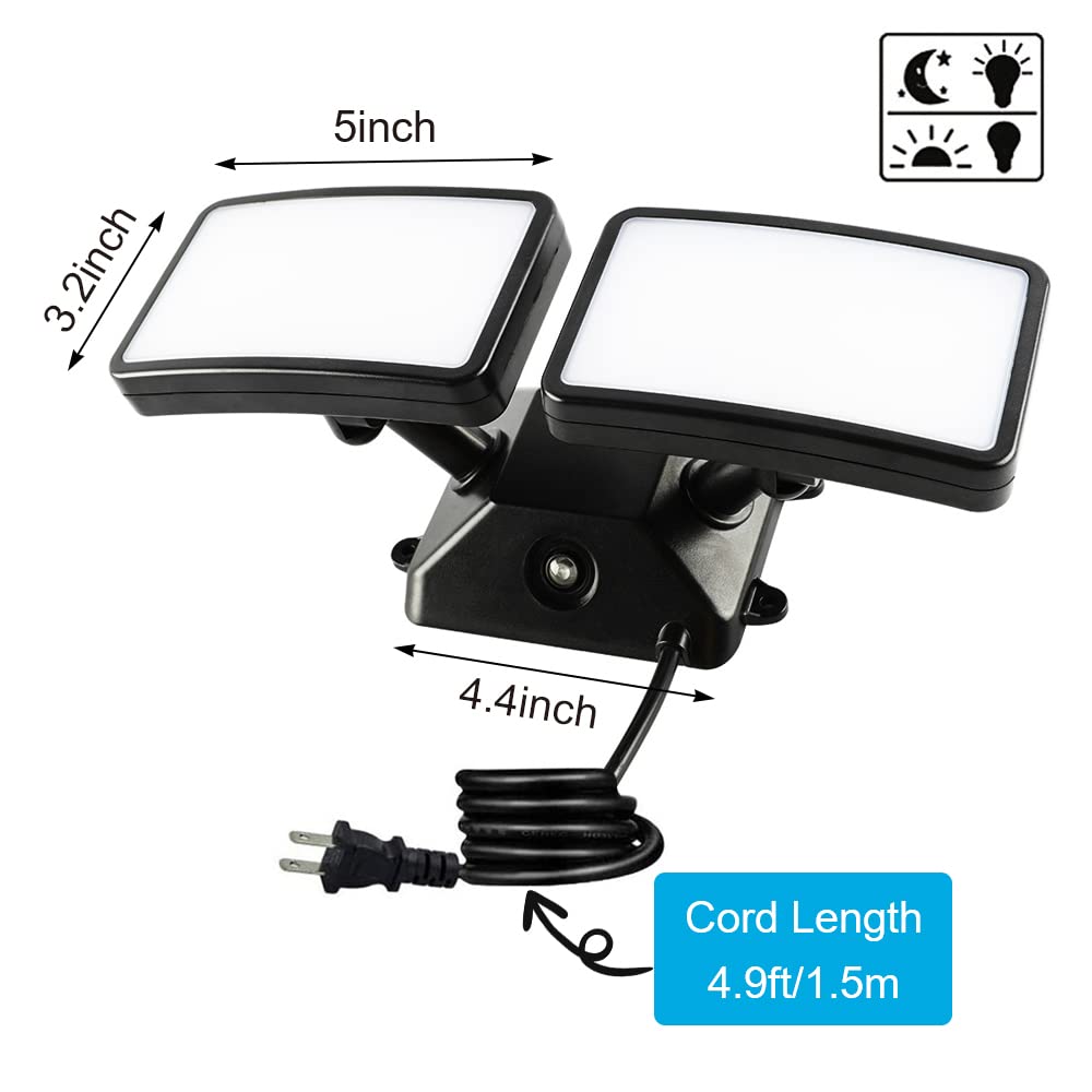 Faguangao Dusk To Dawn Led Security Light,18W Plug In Flood Light Outdoor,5000K Daylight,1600Lm, Ip55 Waterproof,Adjustable 2 He