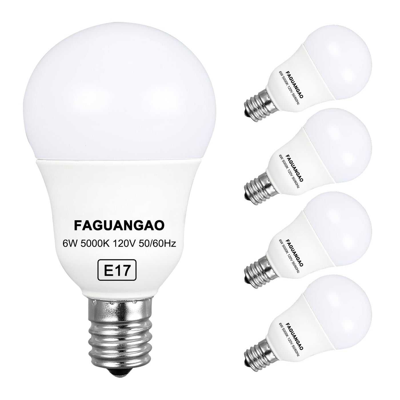 Faguangao E17 Intermediate Base Led G14 Bulbs, 6W 60W Equivalent, 5000K Daylight, 600Lm,Globe Light Bulbs For Ceiling Fan, Chand