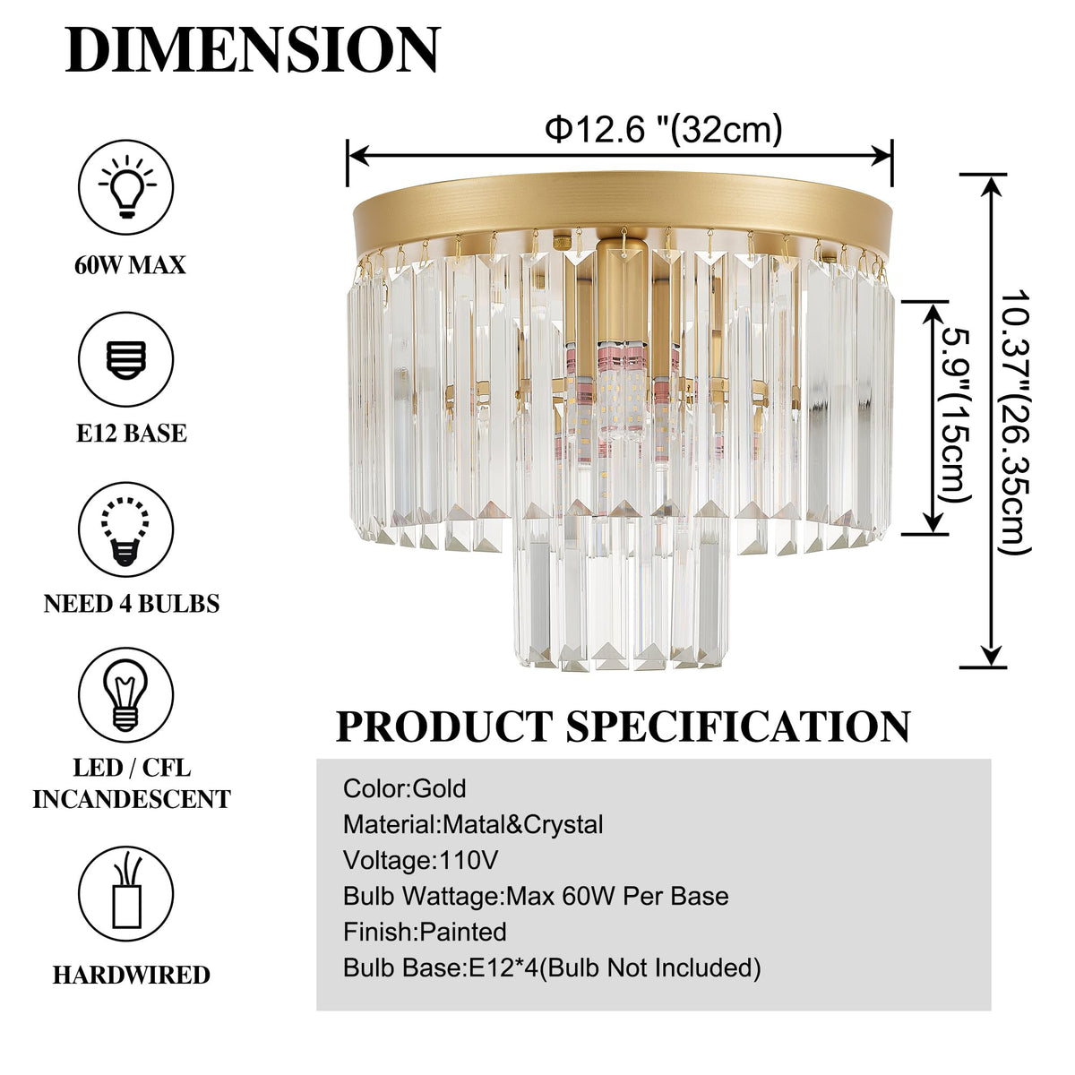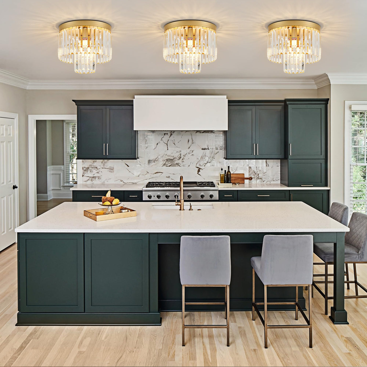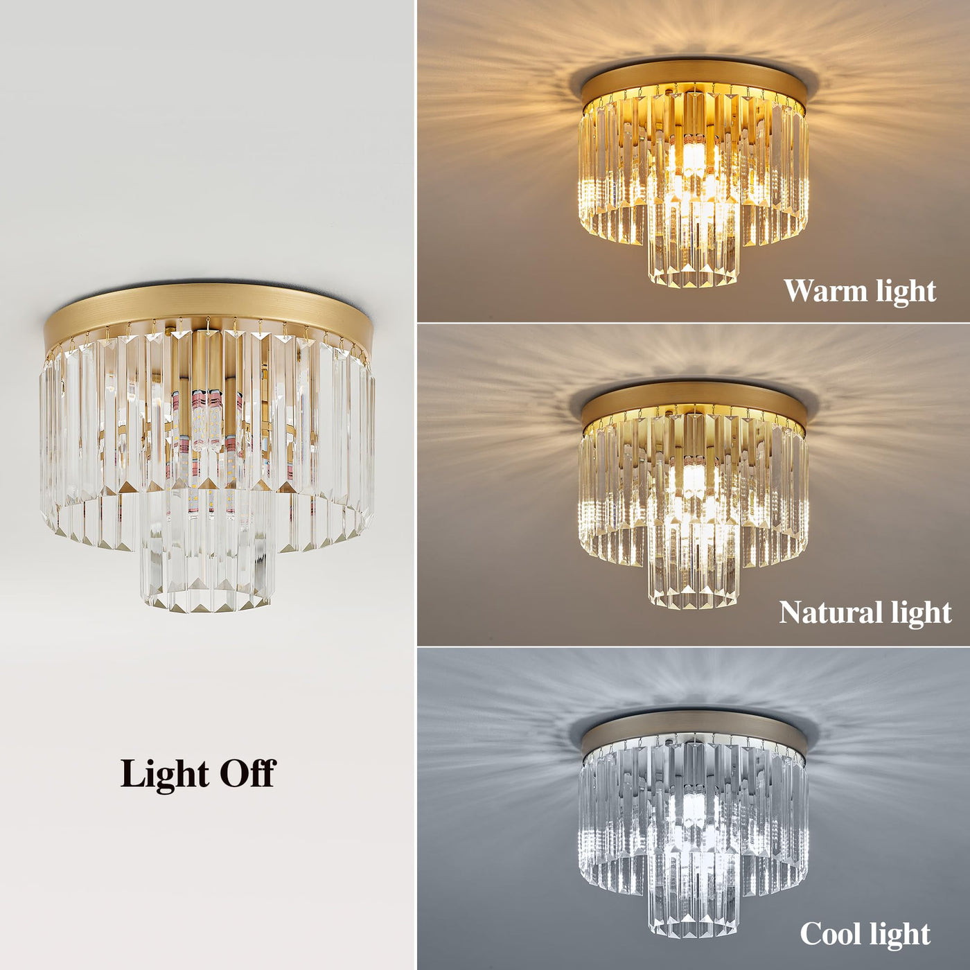 Faibra 12.6'' Gold Crystal Ceiling Light 4-Light Modern Crystal Ceiling Light Fixture 2-Tier Luxury K9 Crystal Ceiling Light,For Dining Room Kitchen Island Living Room Bedroom