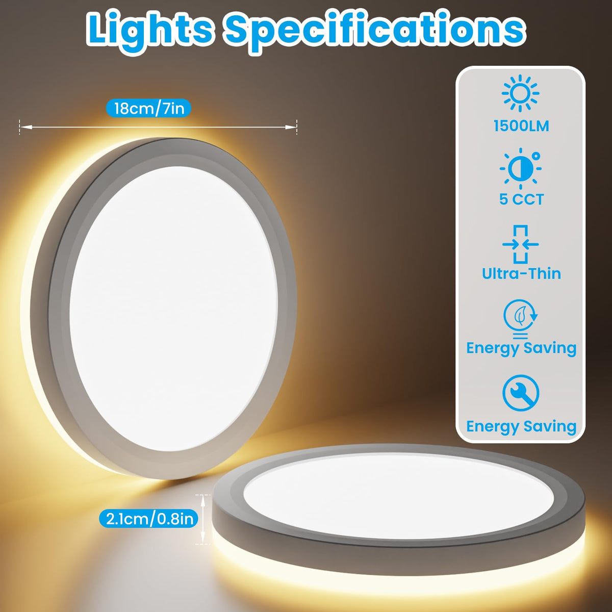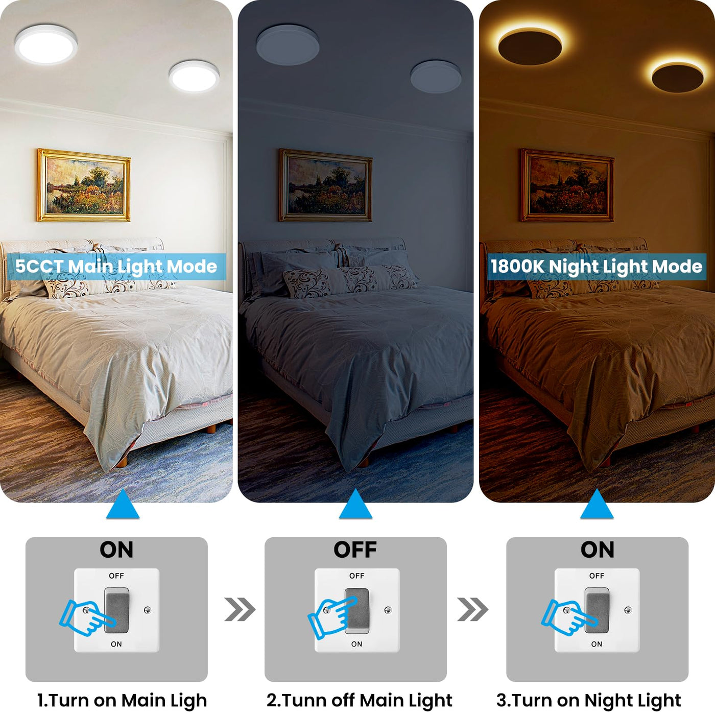 Fairdeer 4Pack 7 Inch Led Flush Mount Ceiling Lights With Night Light, 15W 1500Lm 3000K Warm To 6500K Cold Light Selectable, Sma