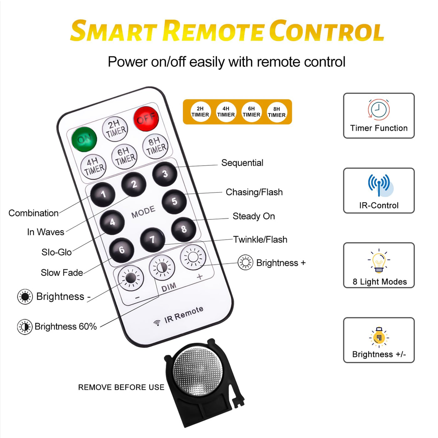 Q: How do I control the brightness and modes of the Fairy Lights?A: The Fairy Lights come with a remote control that allows you to easily turn the lights on and off, adjust the brightness, and switch between the different lighting modes for your convenience.