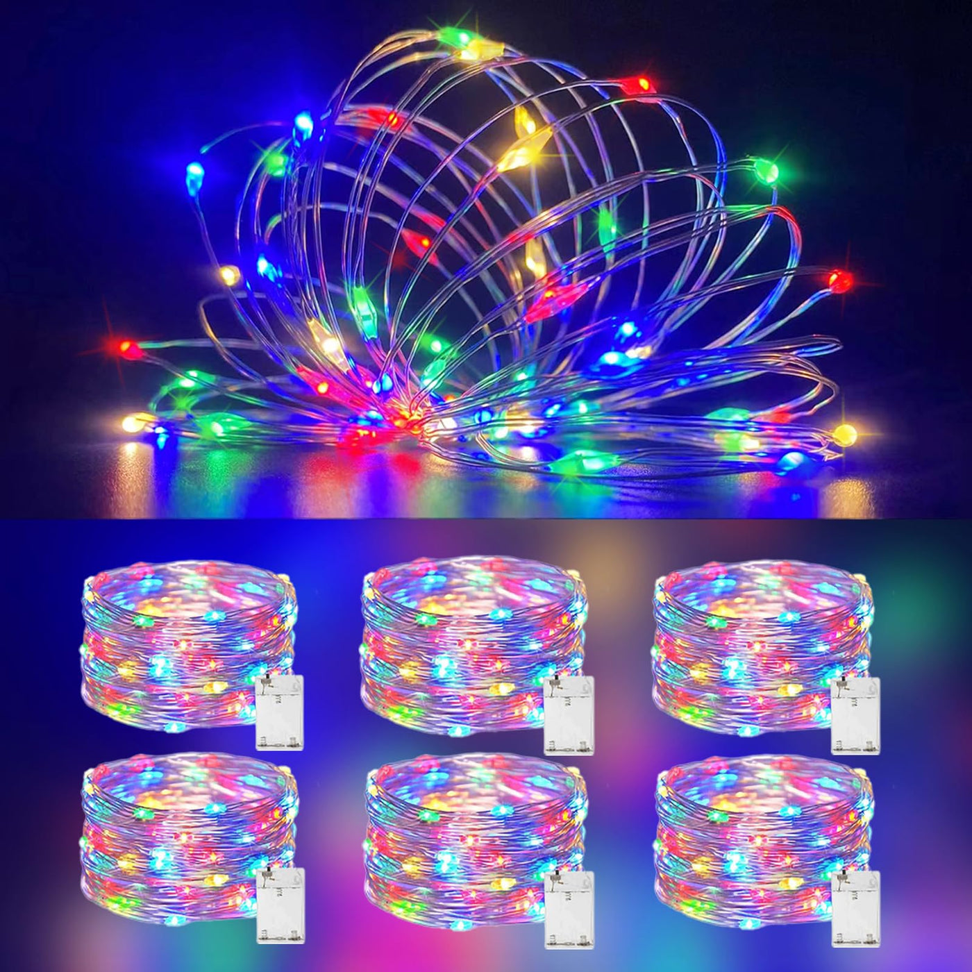 ?Specification? Pack of 6 or 8: 6 or 8 packs fairy light 2m/6.6 ft for each 20 LEDs for each. The LEDs are placed regularly, about 10cm/3.94in apart he lead is about 30cm/11.8in IP44 Waterproof (battery box is not water resistant) Powered by 3 AA battery (not included)