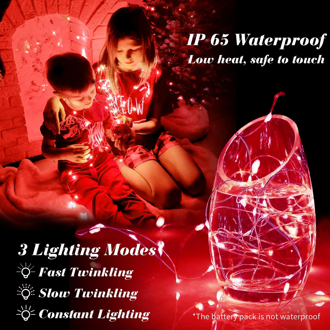 Q: What are the different lighting modes available for the fairy lights?A: The fairy lights feature three lighting modes: Fast Twinkling, Slow Twinkling, and Constant Lighting. This allows you to create different decorative effects and atmospheres for various occasions.