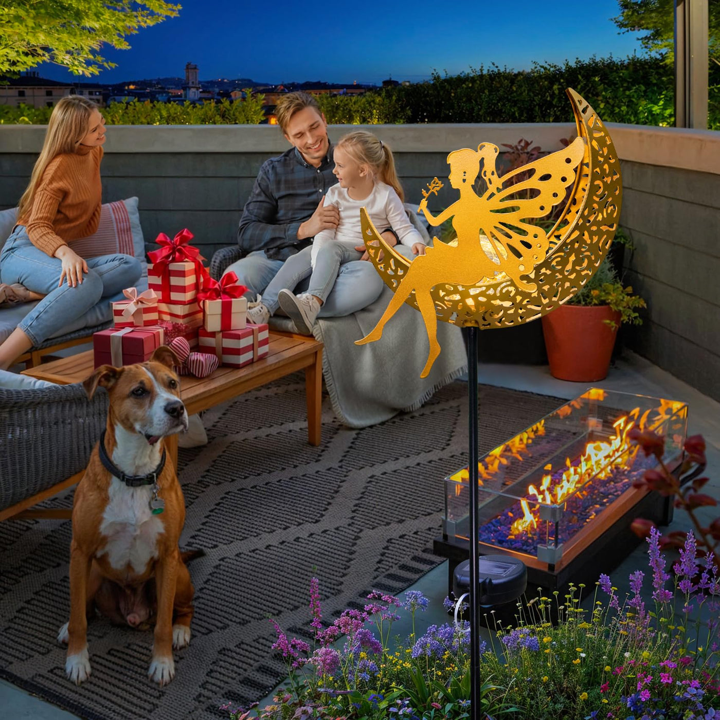 Fairy Moon Solar Lights Outdoor Garden Gifts For Women Yard Decorations Stakes Lights, Waterproof Led Outside Backard Decor, Law