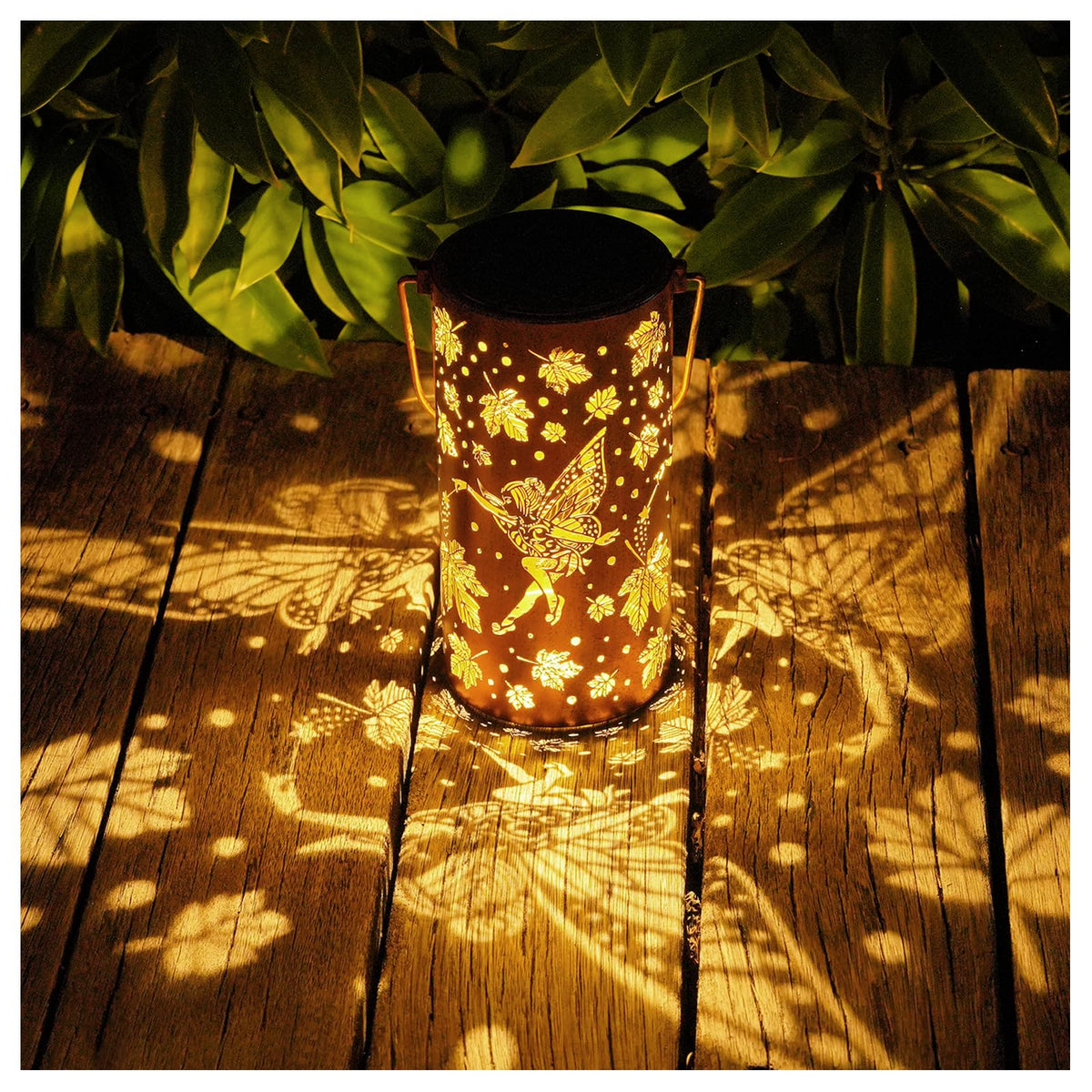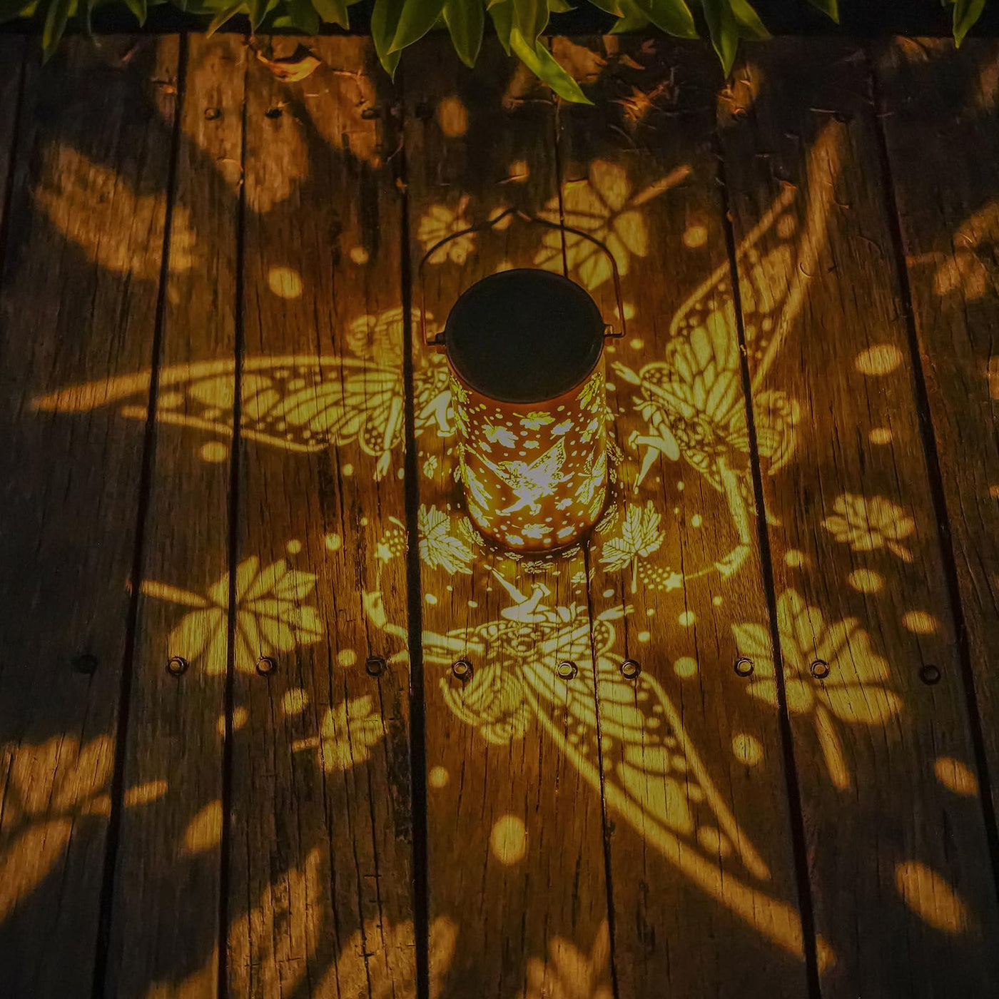 Q: What type of material is the Fairy Solar Lantern made from?A: The lantern is made from sturdy and thickened metal, ensuring durability and a long lifespan, even in various weather conditions.