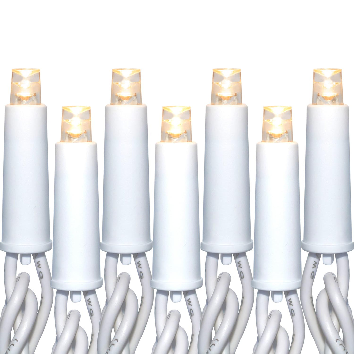 Famiround Led Christmas Lights 100 Count, 50 Ft Christmas Lights Outdoor & Indoor, Commercial Grade, Heavy Duty White Wire, Warm White Light, 6 Inches Spacing