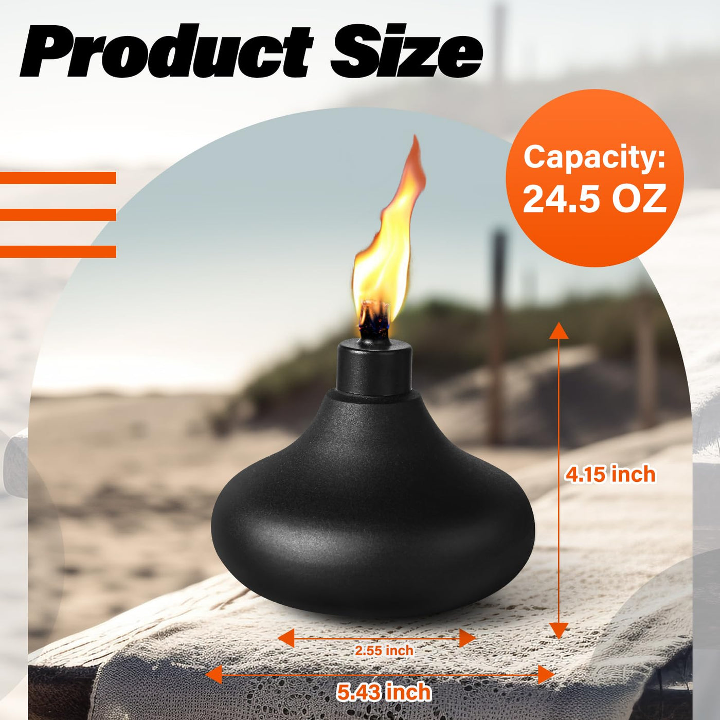 Illuminate your outdoor spaces with the FAN-Torches Metal Table Top Torches, designed for both functionality and aesthetic appeal. These stylish black torches are crafted from premium metal, ensuring durability while adding a touch of elegance to your patio, garden, or any outdoor gathering. Each torch is equipped with a high-quality fiberglass wick that guarantees a long-lasting burn time of over 19 hours, making them perfect for extended evening events.