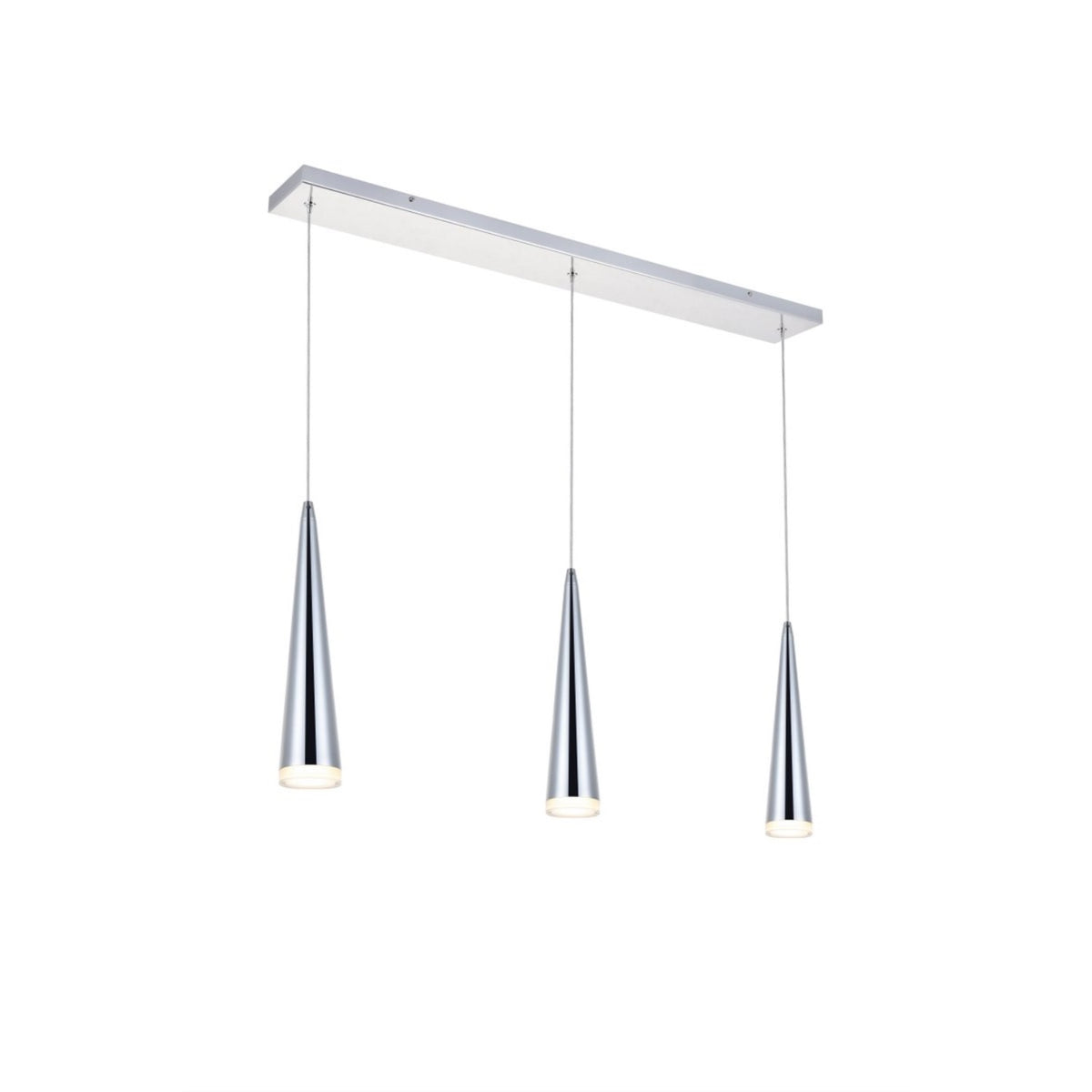 Get lost in beautiful lights and sleek design with the Fantasia collection 3-light pendant lamp in a chrome finish. Its slim cylindrical design ensures a radiant light that will shine down and enlighten the room. With three hanging together in a row, this pendant is perfect for any modern home, large or small.Proposition 65 WARNING: This product can expose you chemicals including lead and lead compounds, which are known to the State of California to cause cancer and birth defects and other reproductive harm.. For more information go to: www.P65Warnings.ca.gov.
