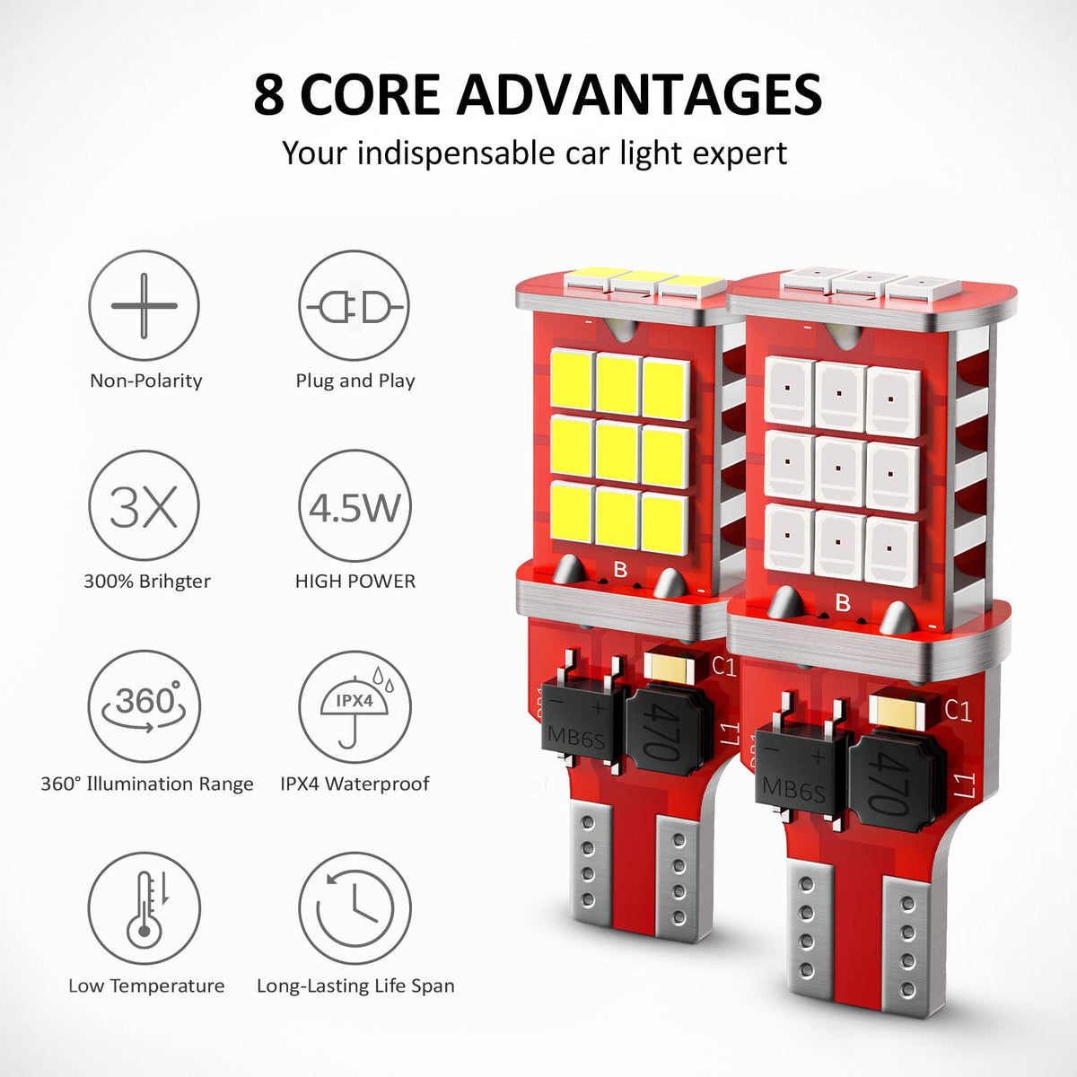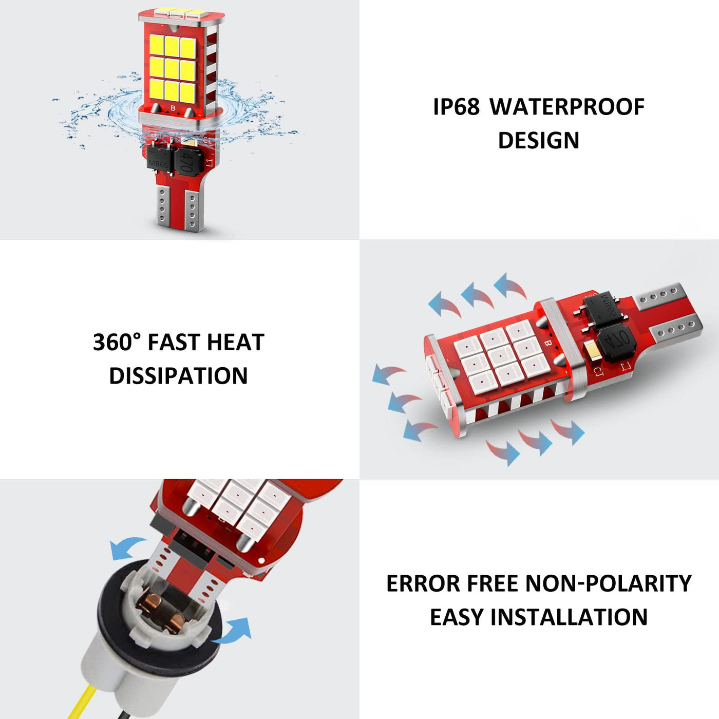 Fanteli 921 Led Bulb, Strobe 3Rd Third Brake Light Bulb Red And Truck Cargo Bed Lights White, 300% Brighter Non-Polarity 194 912 T15 906 904 902 W16W, Pack Of 4