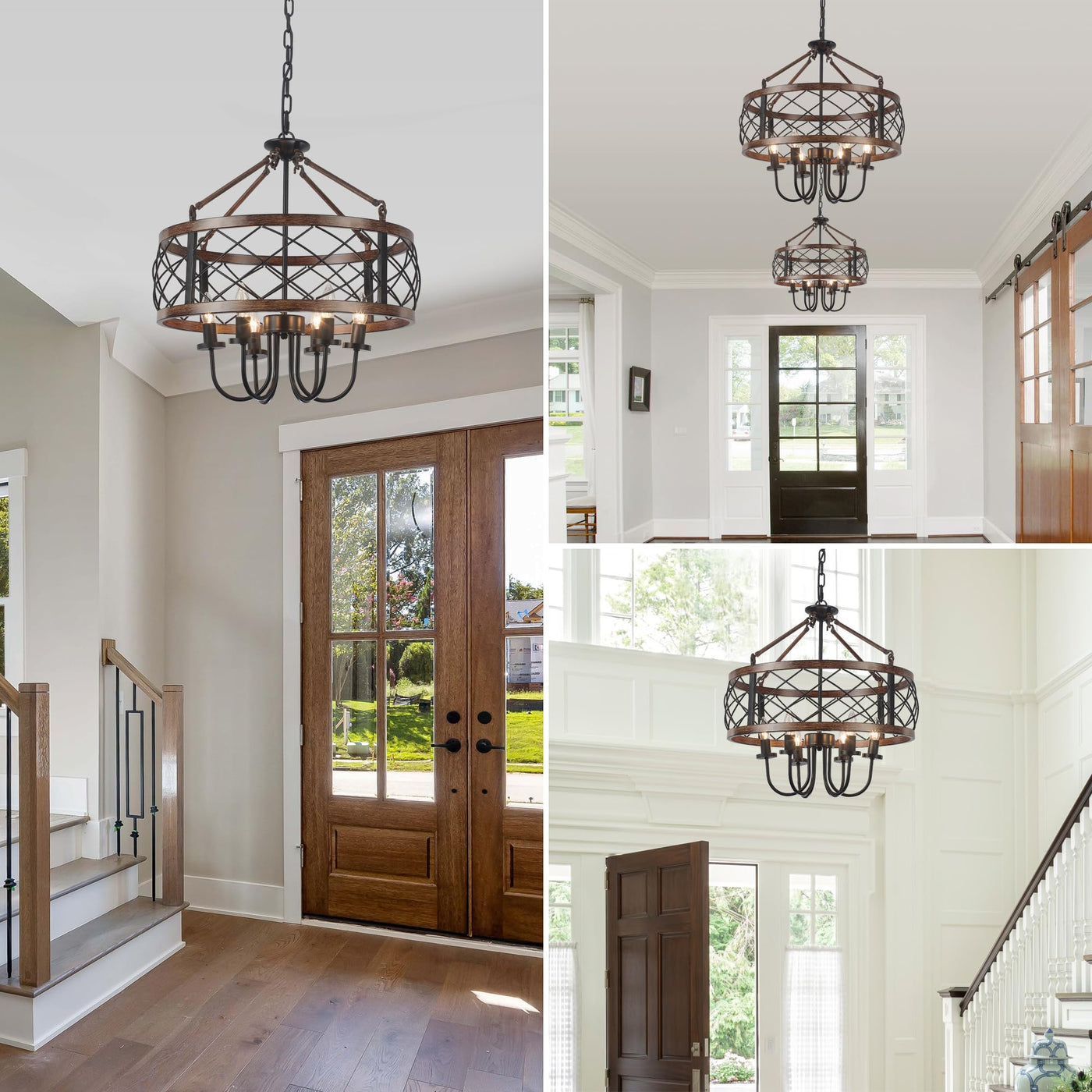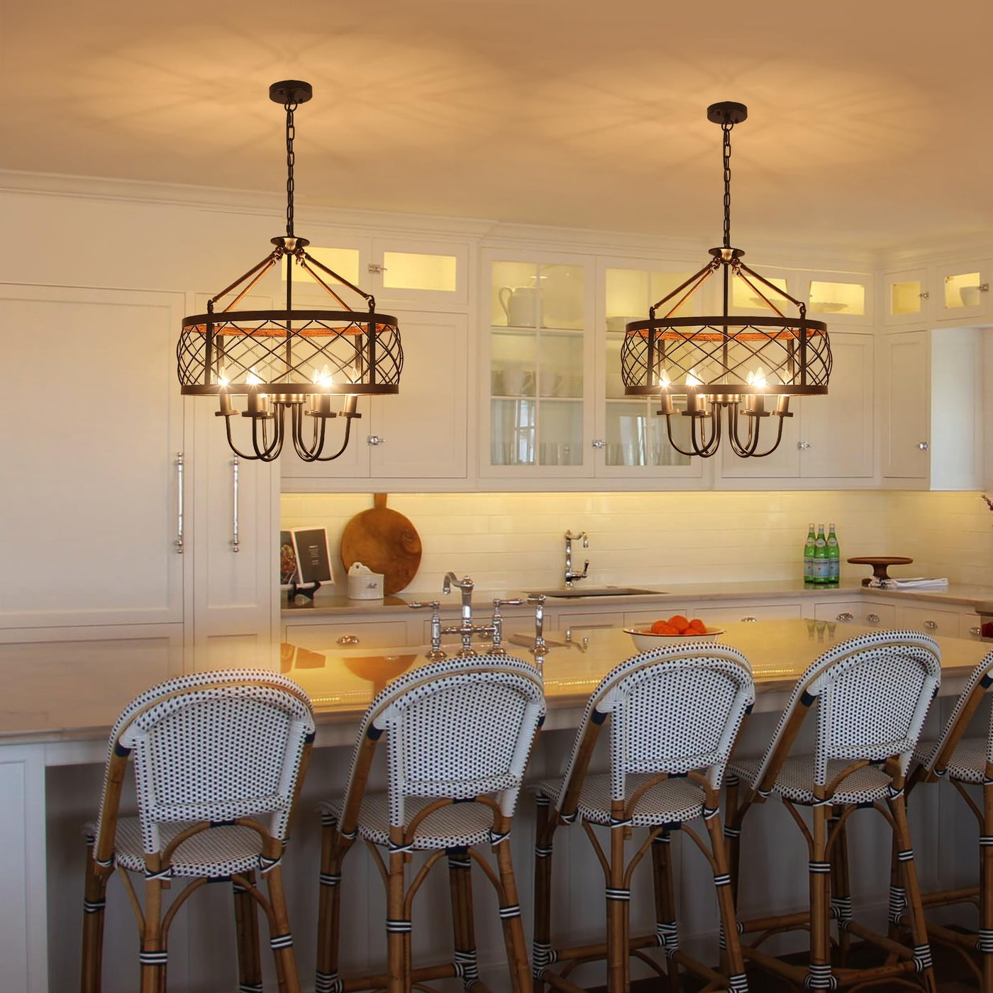 Farmhouse Chandeliers Dining Room Light Fixtures Rustic Industrial 6-Light Black Farmhouse Pendant Light For Kitchen Island Foyer Entryway Living Room
