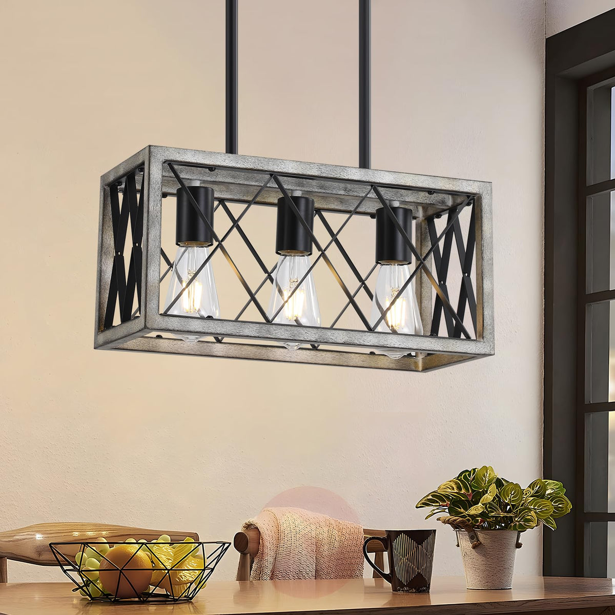 Q: Can I use this fixture in different rooms of my home?A: Yes, this versatile dining room light is perfect for various spaces, including above dining tables, kitchen islands, living rooms, and hallways, enhancing the farmhouse decor.