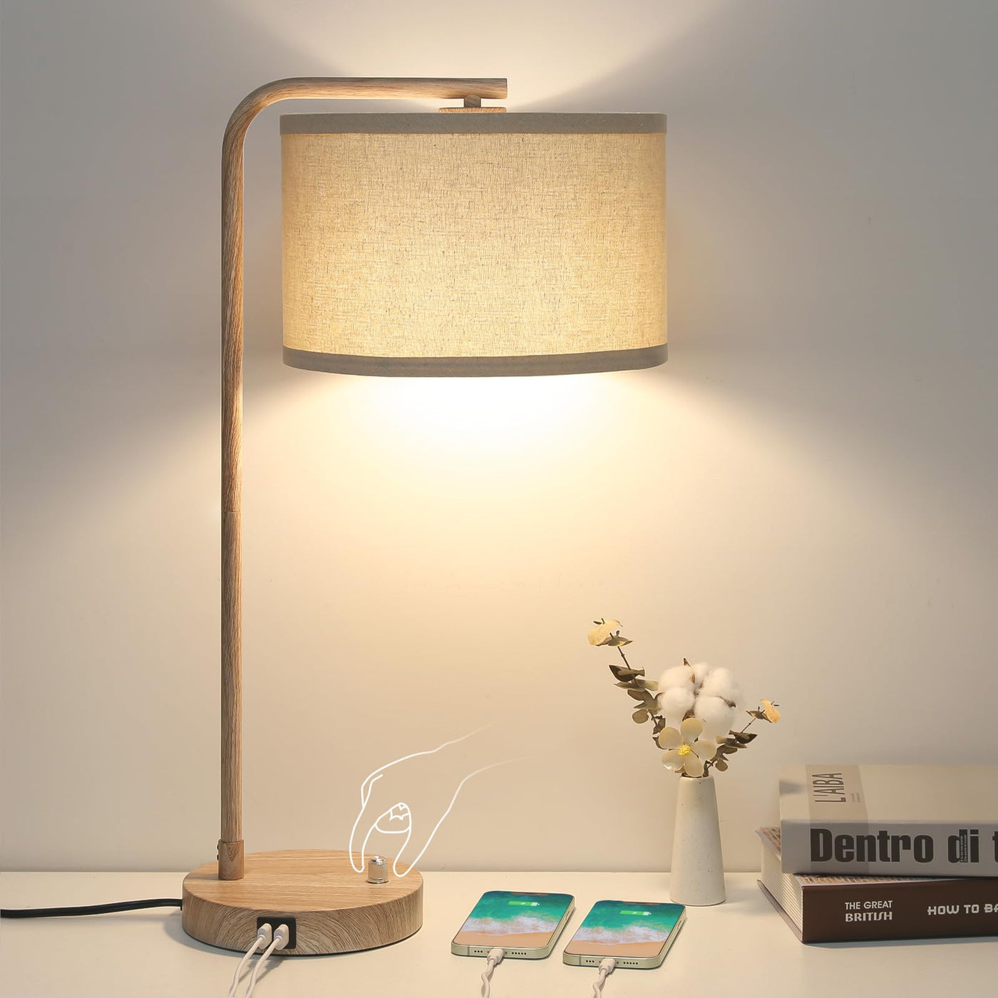 Farmhouse Table Lamp, Fully Dimmable Bedisde Lamp With Dual Usb Charging Ports, Modern Nightstand Lamp, Tall Table Lamp Desk Rea