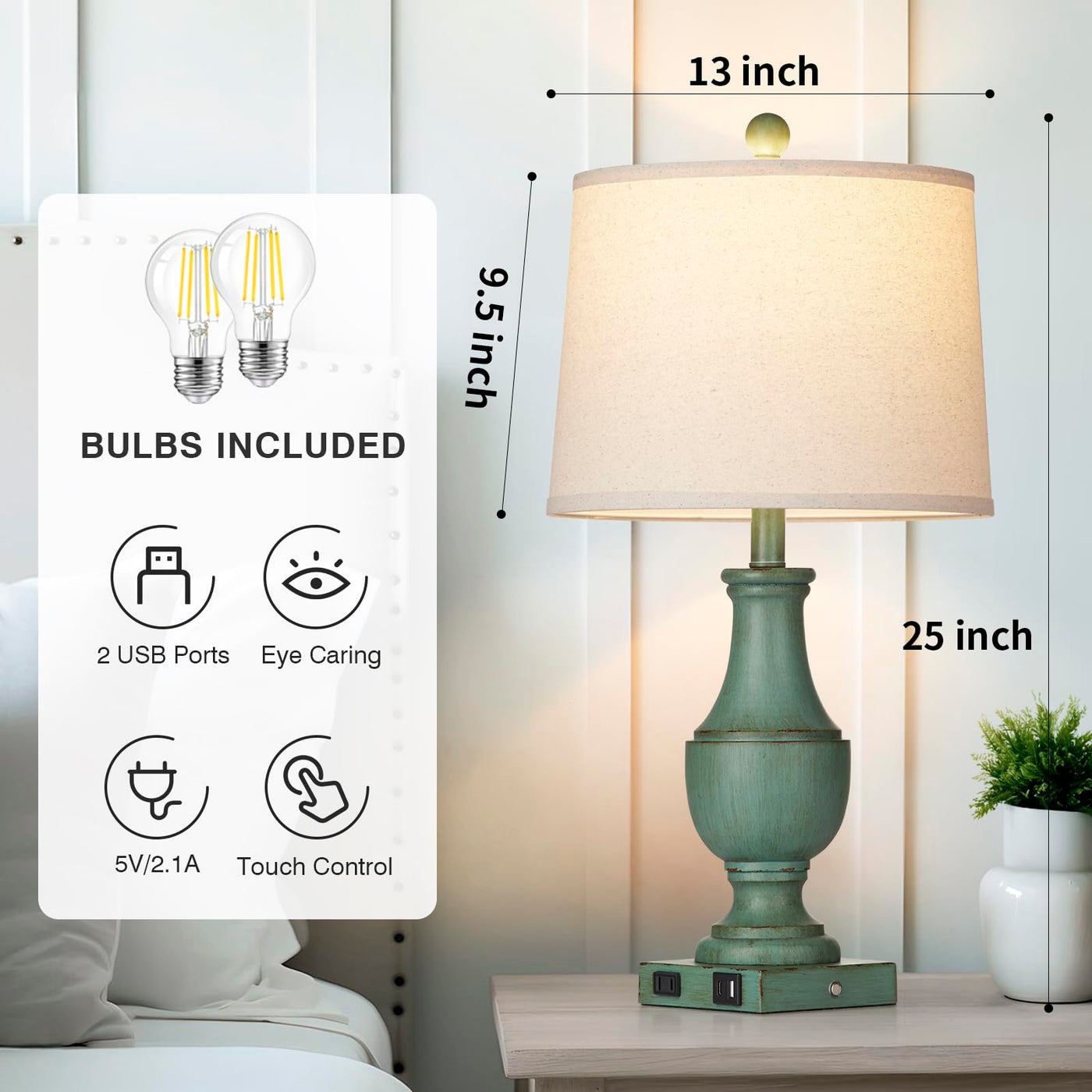Q: What kind of light bulbs are included with the lamps?A: The lamps include two energy-efficient LED bulbs that provide a warm white light at 2700K. These bulbs deliver 800 lumens of flicker-free light, ensuring a cozy and eye-friendly lighting experience for any room.