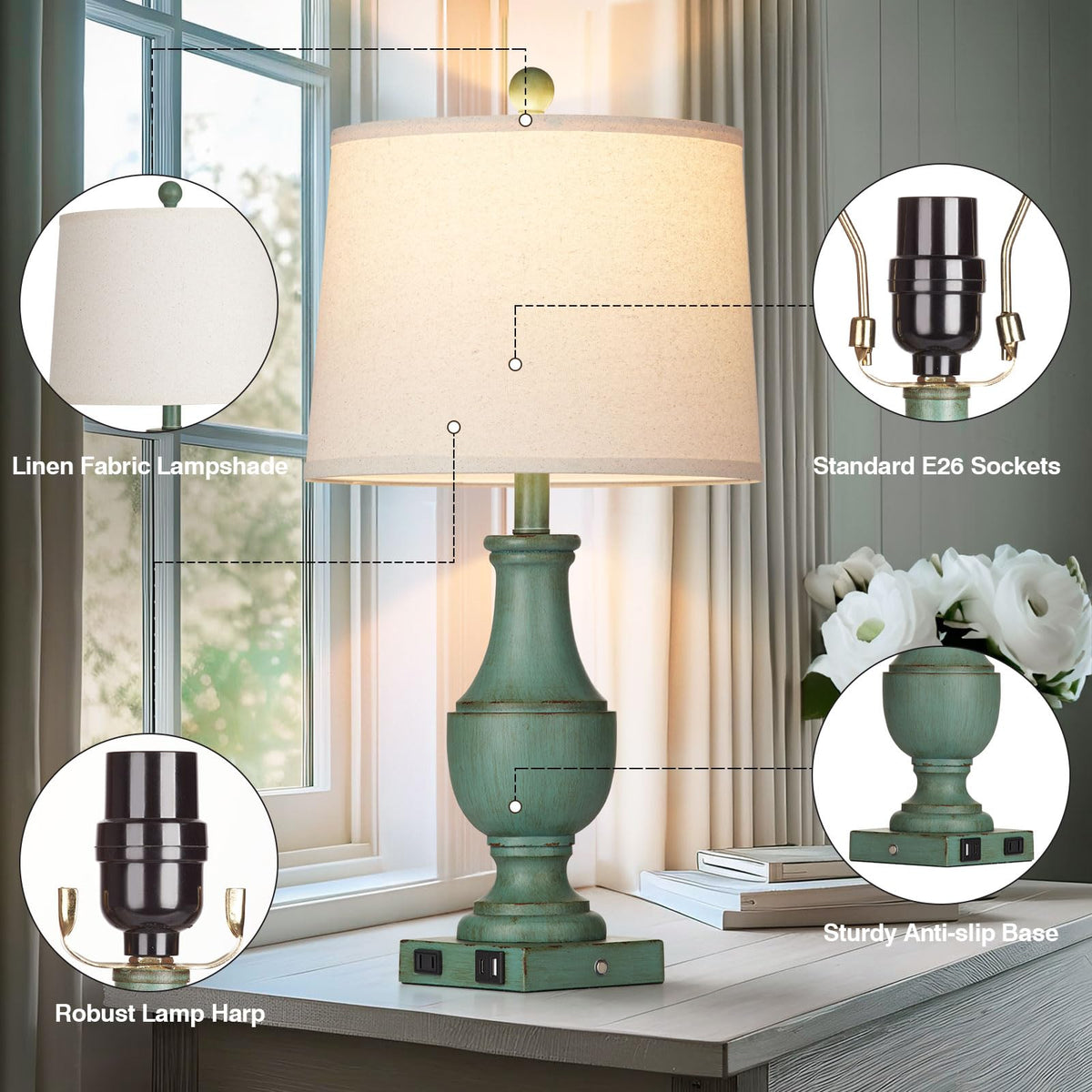 Q: Can these lamps be used in different decor styles?A: Yes, these rustic farmhouse lamps feature a vintage-inspired design that complements various styles, including Nordic, country, and minimalist decor. They are perfect for living rooms, bedrooms, offices, and more.
