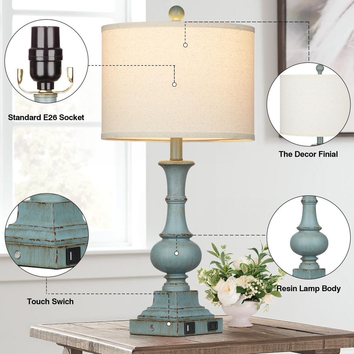 Q: Is the lamp design suitable for various home decor styles?A: Absolutely! The vintage rustic design, featuring blue washed resin and linen fabric lampshades, complements various interior styles, including Nordic, minimalist, and boho decor, making it a versatile addition to your home.