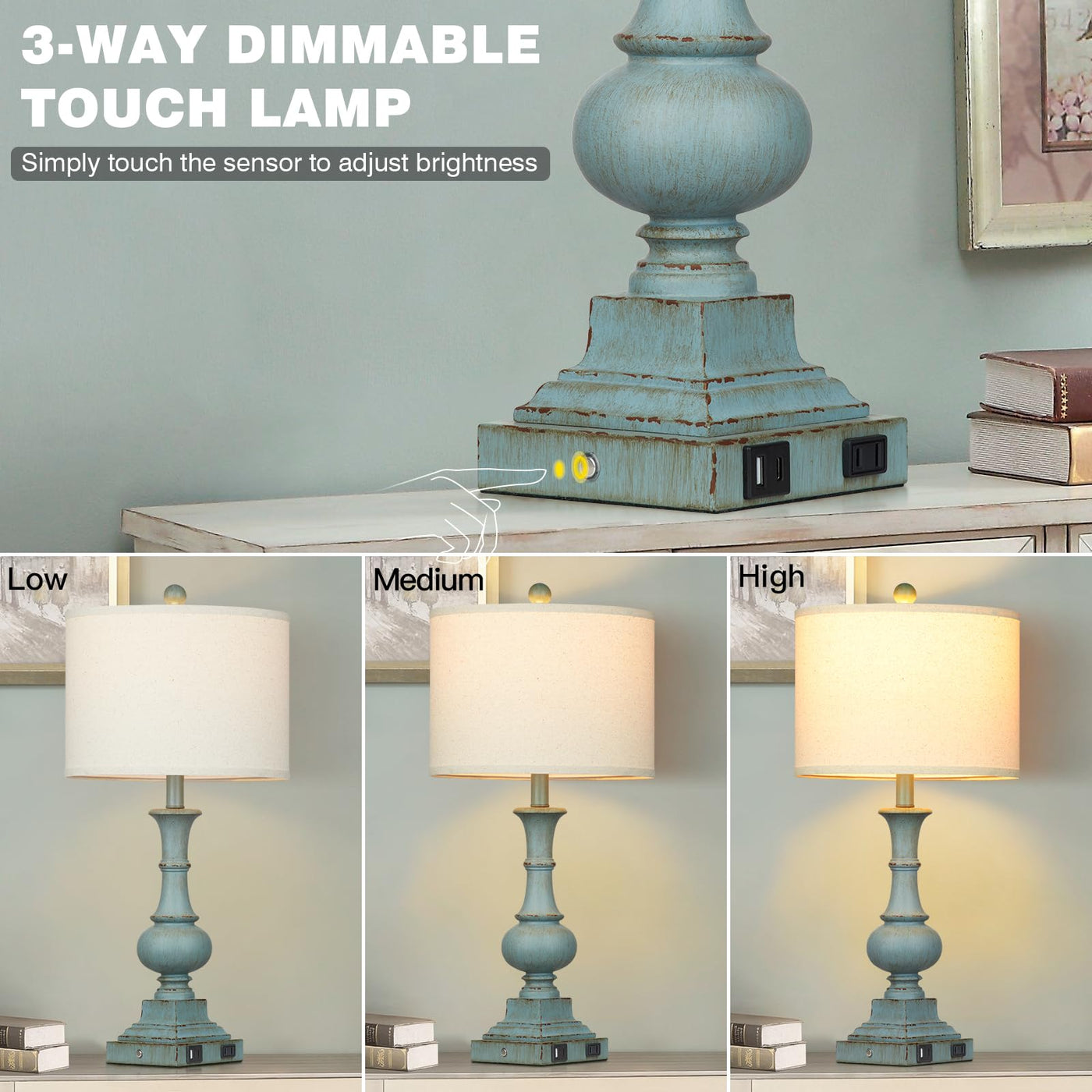 3-Way Dimmable Touch Control Farmhouse Table Lamps Set Of 2