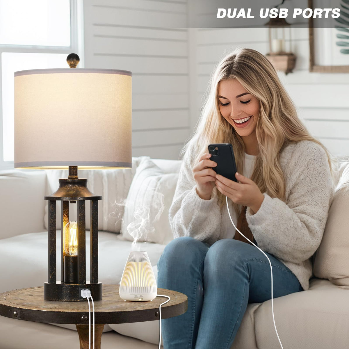 Farmhouse Table Lamps Set Of 2, Vintage Living Room Lamps With 2 Usb Ports, 3 Way Dimmable Touch Control Bedroom Lamp With 2 Led