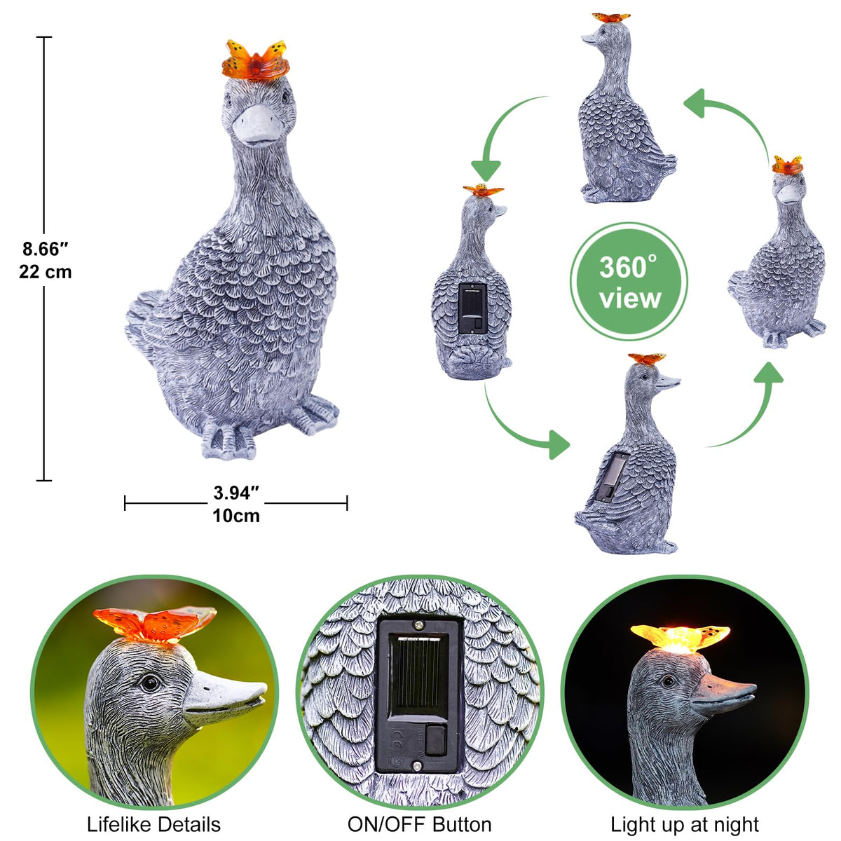 Fashionoda Solar Garden Statue Goose Figurine - Outdoor Decoration With Butterfly For Garden Yard Lawn Home Decor Outside : Unique Gifts For Mom Grandma