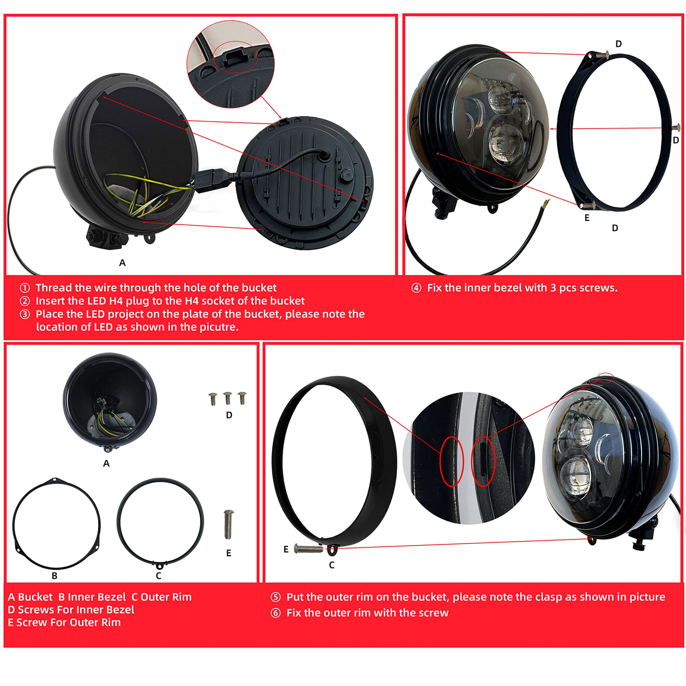 Key Features:- Universal fit for most motorcycles with a 7-inch headlight, including Harley, Kawasaki, Honda, Yamaha, Suzuki, Chopper, Cafe Racer, Bobber, and Aprilia models.
