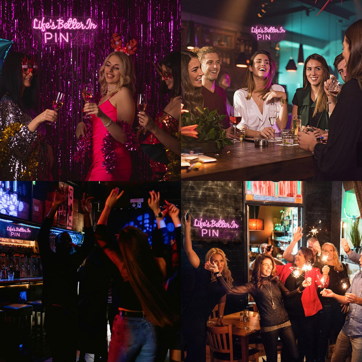 Lifes Better In Pink Neon Sign: Our Neon Sign Is Composed Of The Words Lifes Better In Pink And High Heel Patterns. Led Neon Sign Creates A Romantic Atmosphere With Soft Pink Light And Is Perfect For Bedrooms, Dressing Tables Or Gender Parties To Celebrate Self-Love And Feminine Energy.