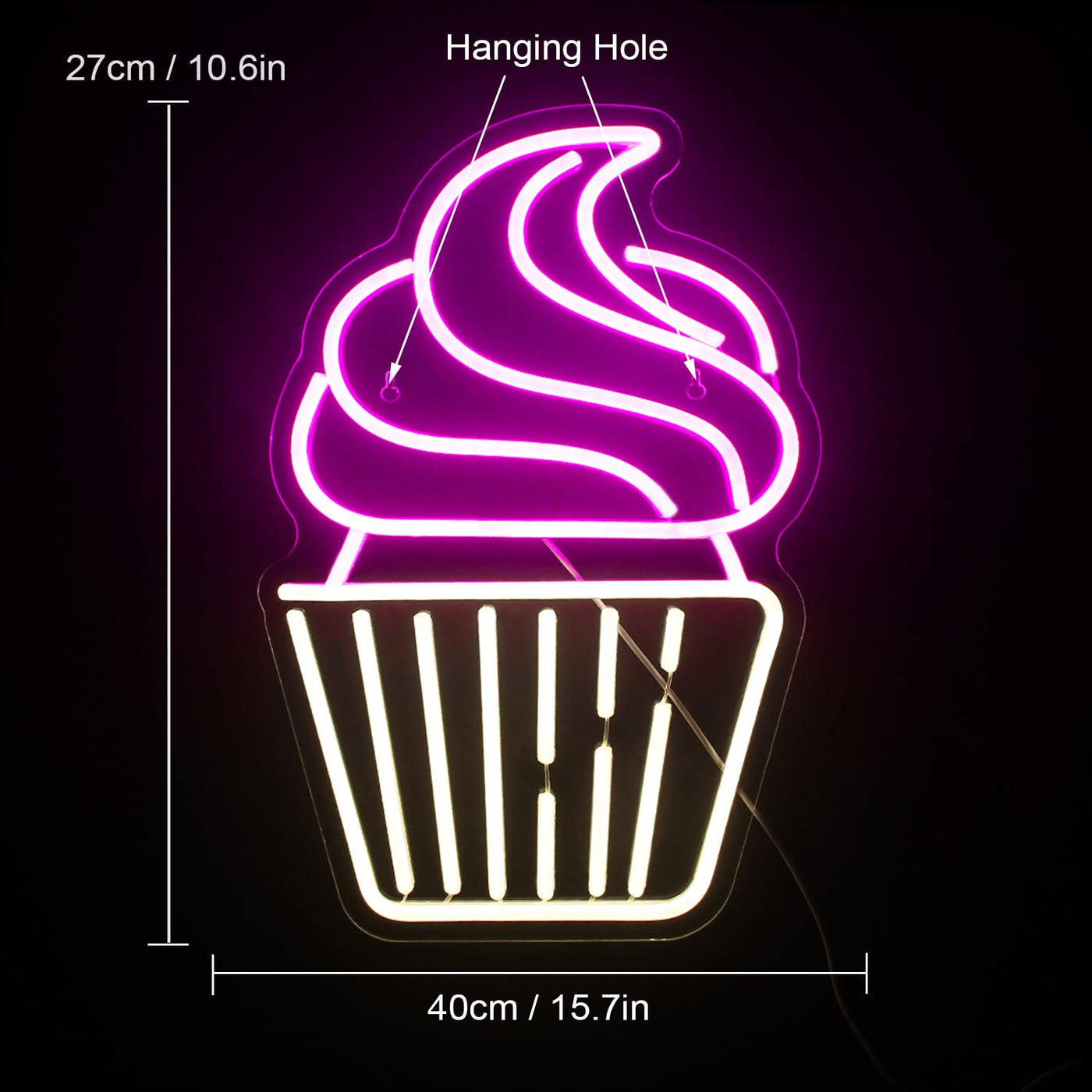 Q: What occasions is the cupcake neon sign suitable for?A: The colorful and cute design of the cupcake neon sign makes it a perfect decoration for various occasions such as parties, birthdays, gatherings, or as a gift for loved ones.