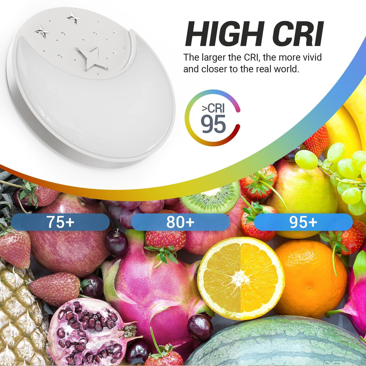Fayotat 12 Inch Flush Mount Ceiling Light, Modern Moon & Star Ceiling Light Fixture, 3 Color Temperature Led Bedroom Lighting Fo