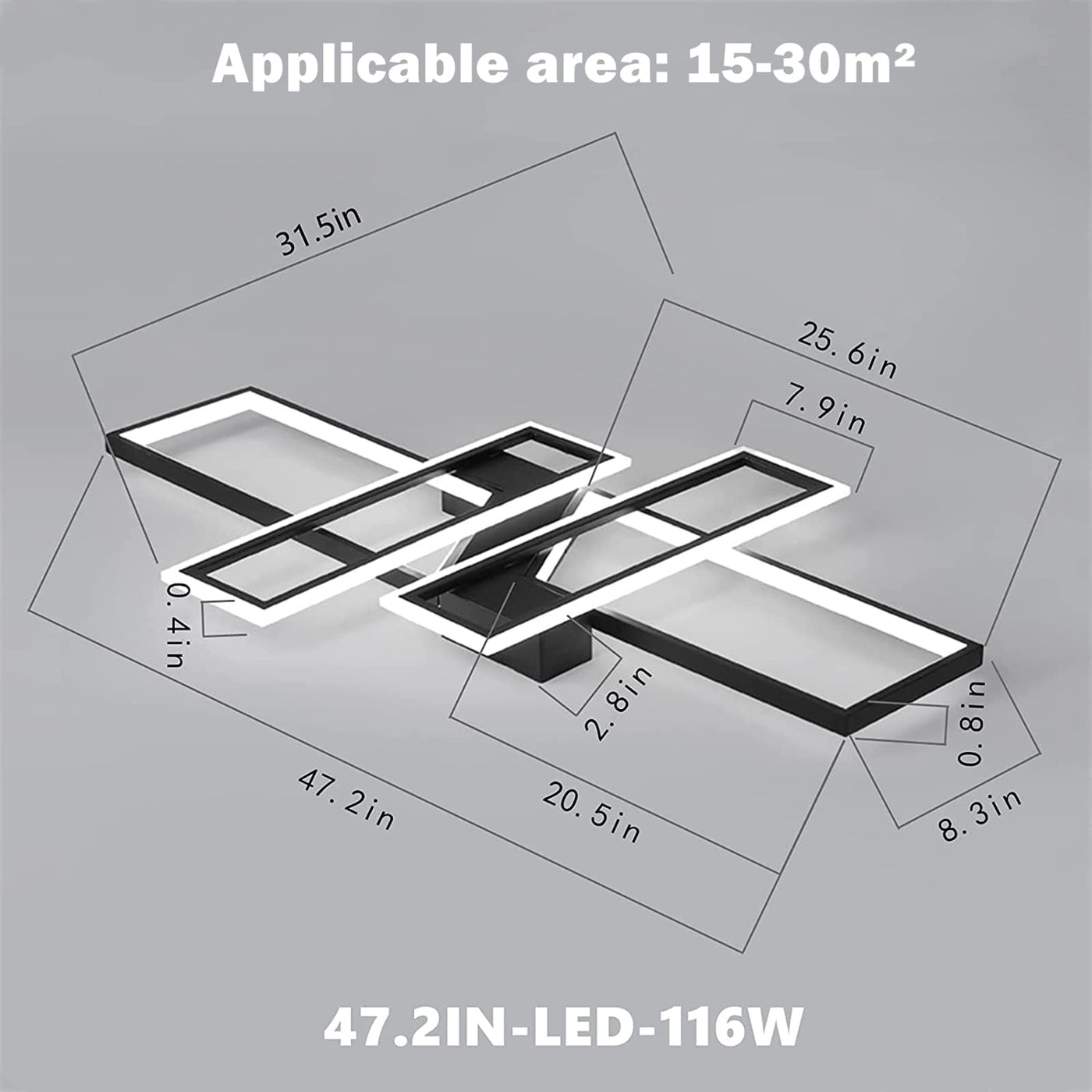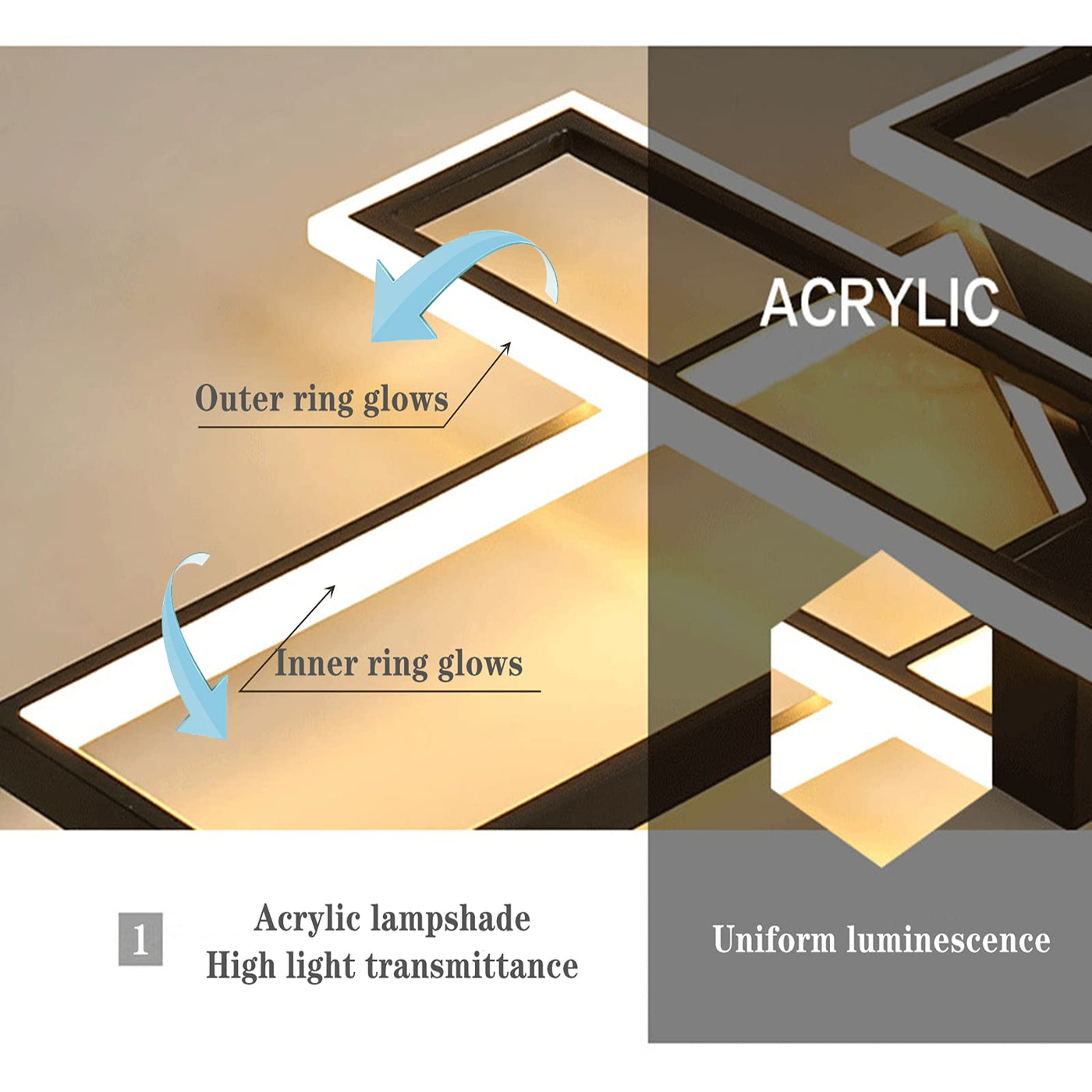 Name: Ceiling Lights Chandeliers Close To Ceiling Lights&Nbsp; Product Size:47.2X 31.5X 2.8In&Nbsp; Style: Modern&Nbsp; Colour: Black/White &Nbsp; Shape: Rectangle&Nbsp; Material: Aluminum + Acrylic &Nbsp; Number Of Lights: 4 &Nbsp; Maximum Compatible Wattage: 116Watts &Nbsp; Lighting Characteristics: Steplessdimming &Nbsp; Voltage: 110 Volts&Nbsp; Power Supply: Ac&Nbsp; Do You Need Batteries: No&Nbsp; Remote Control: Included (The Remote Control Does Not Contain Batteries) Color Temperature: 3000-6000 Kelvin &Nbsp; Product Weight: 3.4Kg&Nbsp; The Product Installation Is Very Simple Only Simple Assembly Is Required. For Your Safety Please Disconnect The Power Before Installation. Very Suitable For Dining Room Bedroom Living Room Study Office Etc.&Nbsp; Remind:&Nbsp; 1. If The Remote Control Cannot Control Thelamp You Need To Activate The Remote Control.&Nbsp; 2. Turn Off The Bulb And Then Turn It Onagain. Click The On Button 6 Times-In The Upper Left Corner The Indicatorlight Will Flash Several Times-helpfulfully Separated . 3. Close And Reopen Press The Start Buttonin The Lower Left Corner The Indicator Light Will Flash Several Times Indicating That The Binding Is helpfulful.
