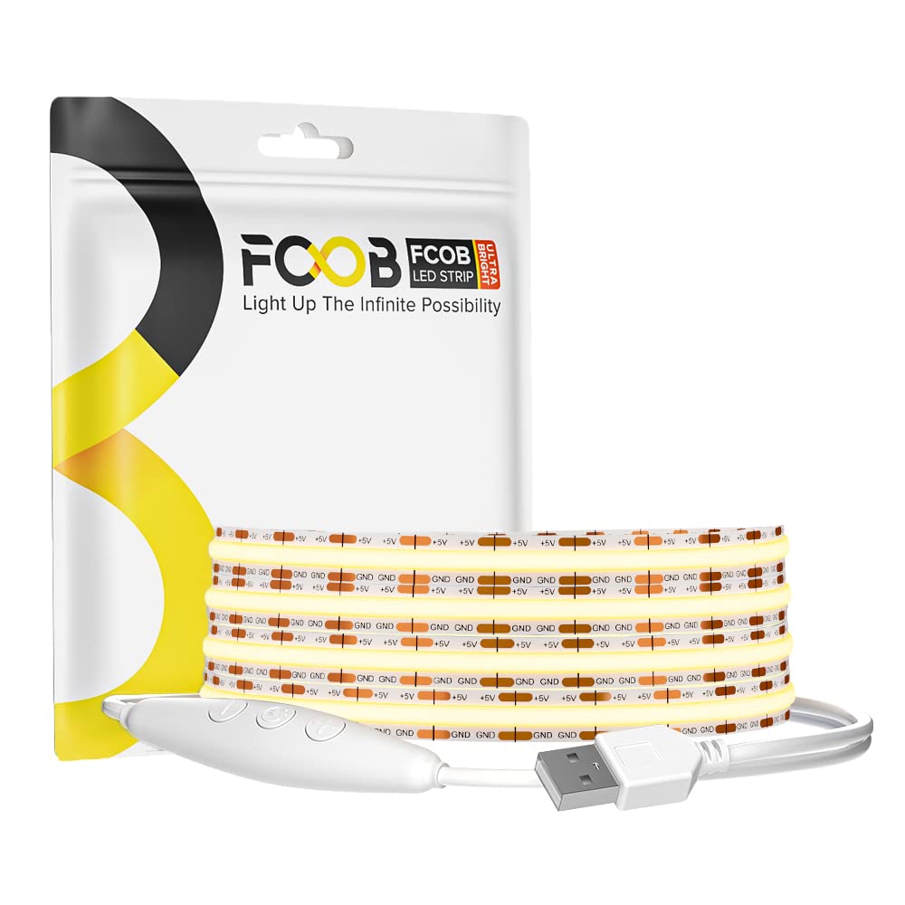 Q: Is the FCOB LED strip dimmable?A: Yes, the FCOB LED strip is dimmable when used with a compatible USB power dimmer, allowing you to adjust the brightness to your preference.