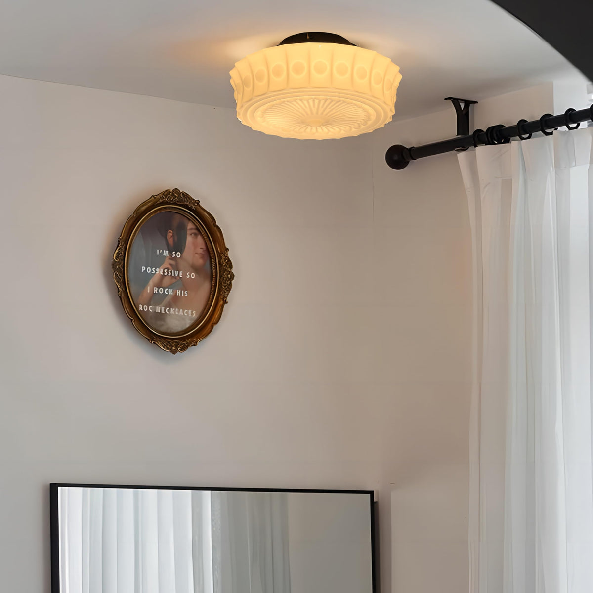 Fctwaks Schoolhouse Ceiling Light Fixture, 13.8'' Milk Glass Semi Flush Mount Mid Century Vintage Ceiling Light For Bedroom Hallway