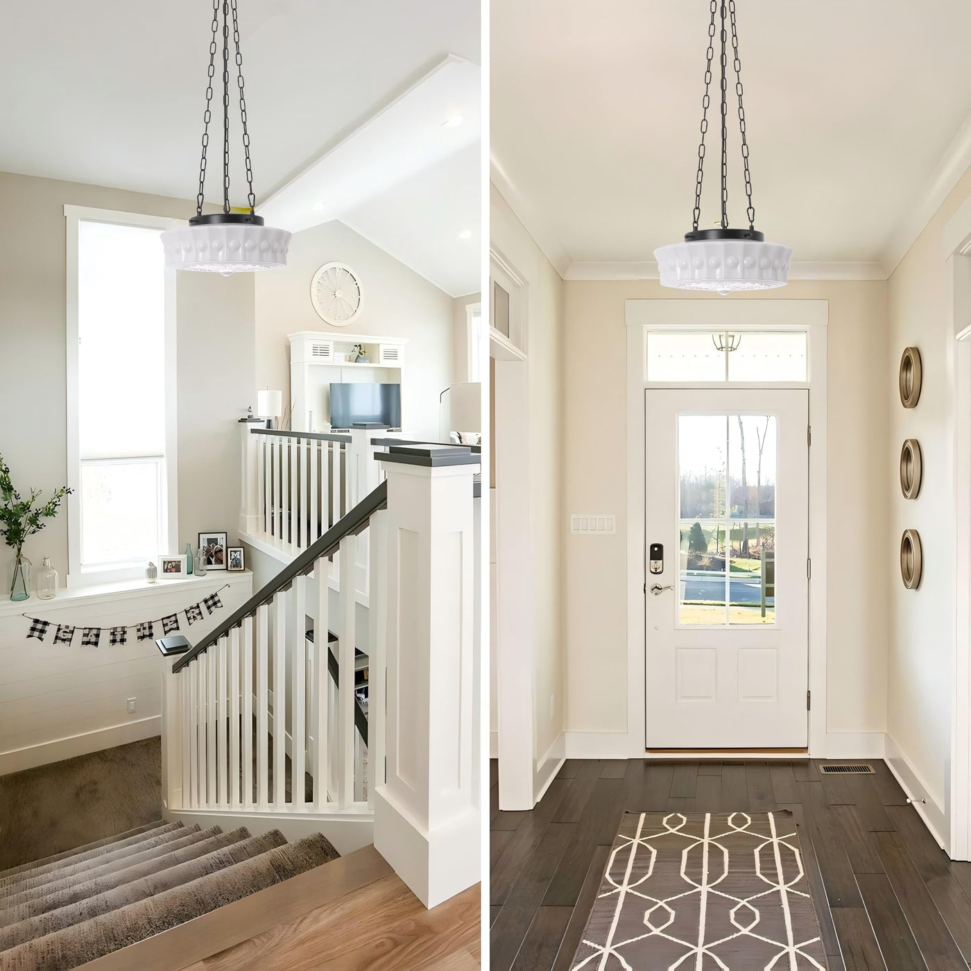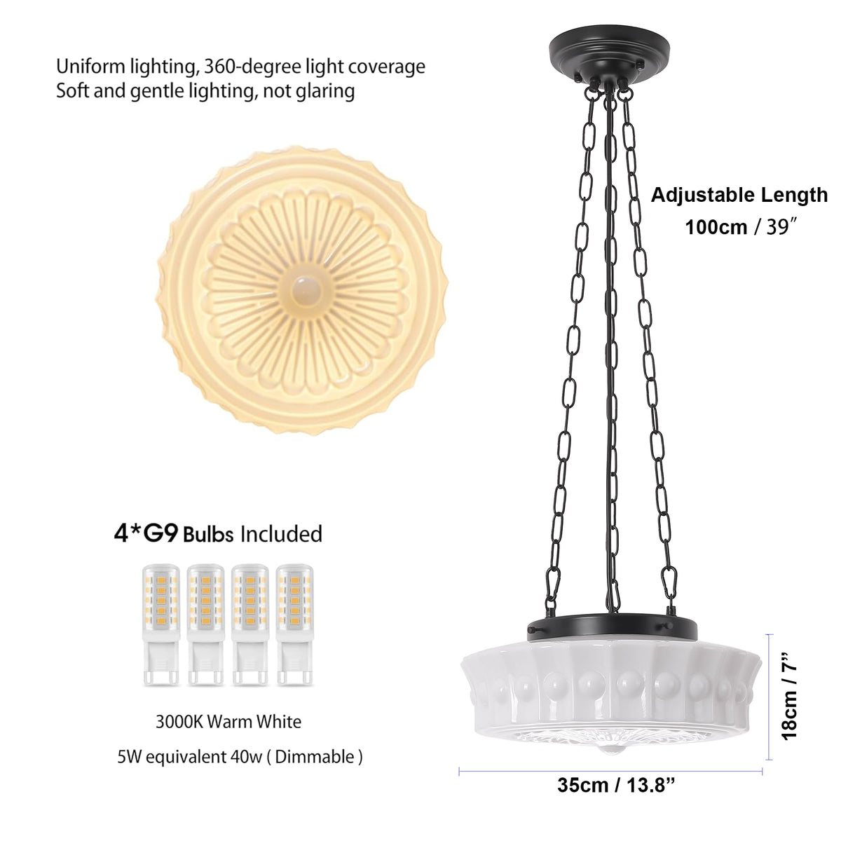 Fctwaks Schoolhouse Pendant Fixtures, 14'' Mid Century Modern Brass Gold Milk Green Glass Pendant Light, Adjustable Height, Vint