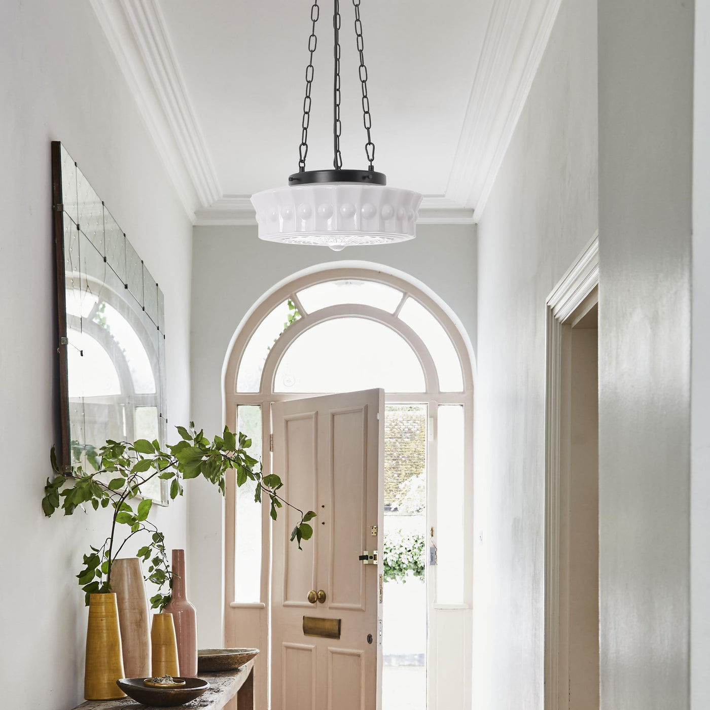 Schoolhouse Pendant Fixtures, 14'' Mid Century Modern Brass Gold Milk Green Glass Pendant Light, Adjustable Height, Vintage Ceiling Hanging Lighting For Dining Room,Hallway,Kitchen Island