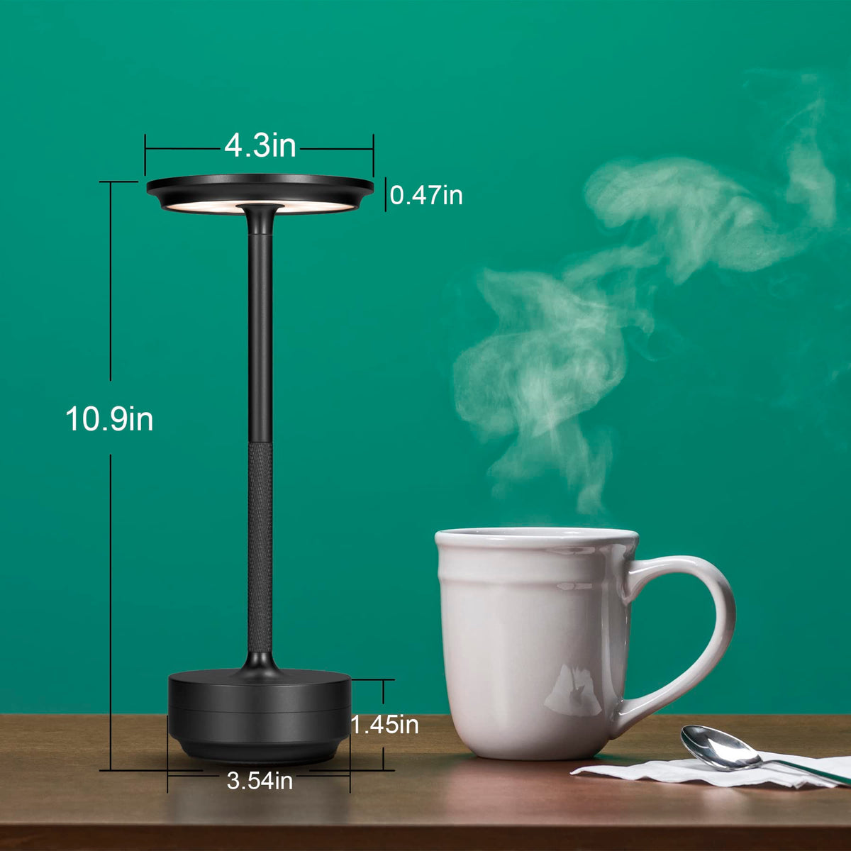 Product Name: Rechargeable Table Lamp (Black) Lamp Body Material: Aluminum Profile Product Size: D4.7*W4.7*H11 Inches Switch: Tact Switch, 3-Level Dimming Light Source: Full Spectrum Energy-Saving Led Color Temperature: 2900K/4000K Lumens: 200 Input Voltage (V): Dc5.0V Input Current (A): 1.5A Full Spectrum Lamp Beads: 22Pcs Working Temperature (?):- 5-50 Working Life (Hours): 50000+ Power Source: Battery Powered Battery Capacity: 4000Mah Current: 700Ma Power Consumption: 3.5W Color: Gold/Black/Grey/Silver Applications: Family Room, Office, Restaurant, Bar, Cafe/Patio/Outdoor/Travel Package Includes: 1 X Usb Charging Cable 1 X Led Cordless Desk Lamp 1 X User Guide 1 X Packing Box 1 X 24H*7 Service
