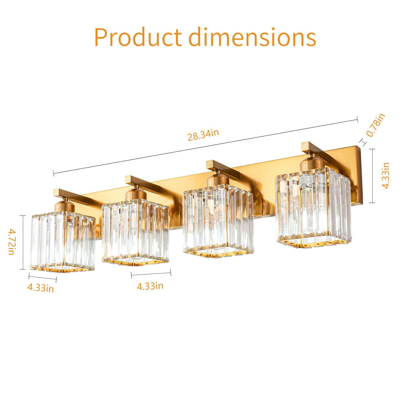 Modern Bathroom Vanity Light 4-Lights Modern Gold Brushed Brass Finish Crystal Bathroom Wall Light Bathroom Vanity Light Fixtures